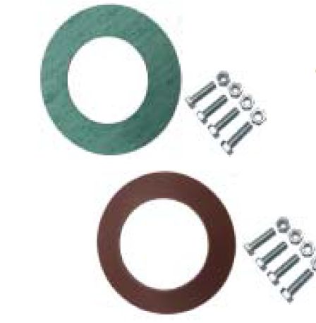 Includes: four 5/8 inch x 3 inch bolts and four 5/8 inch nuts - Non-asbestos - 1/16 inch thick gasket rated to 500 degrees and 150 pounds