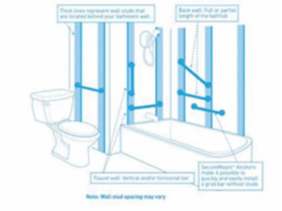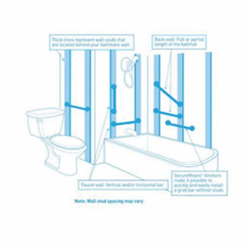 Moen®, YG5418CH, Grab Bar, Designer, Kingsley® Collection, 1-1/4 in Diameter, 18 in Length, 20.95 in Width, 2.95 in Height, 500 lb Load, Wall Mounting, Stainless, Chrome, Import