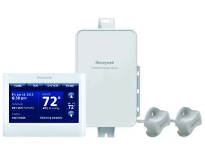 Includes: one THX9421R-5021WW/U Programmable touchscreen thermostat, one THM5421R-1021/U equipment interface module, and two duct sensors