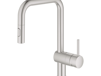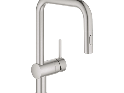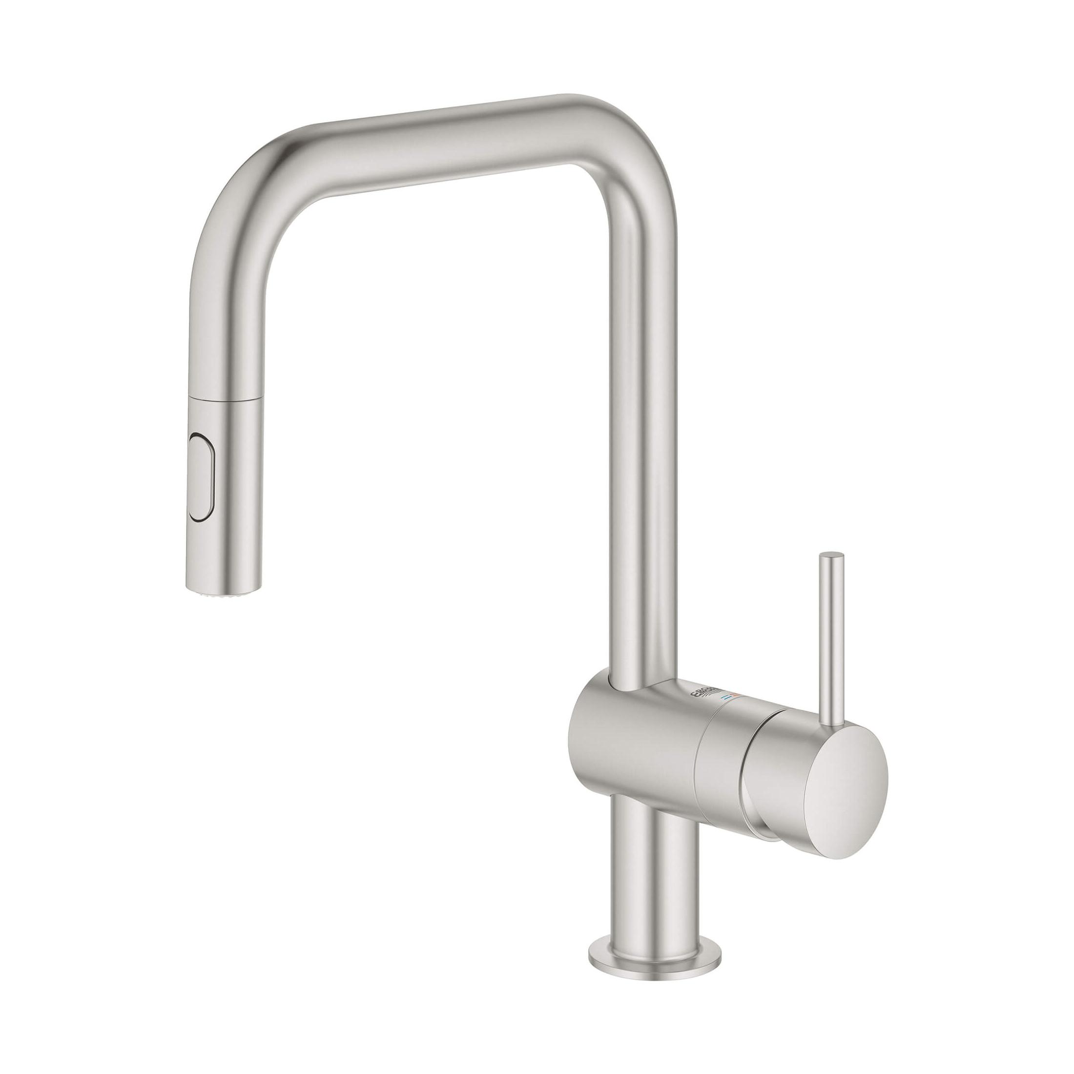 The GROHE Minta® dual spray pull-out kitchen faucet adds sleek sophistication to every kitchen design. Convenient pull-out spray easily toggles between regular water flow and spray for maximum versatility from filling pots to rinsing the sink. Meticulously crafted with a smooth, swivel spout and lever handle that offers precise control of water pressure and temperature. Available in durable finishes for lasting beauty.