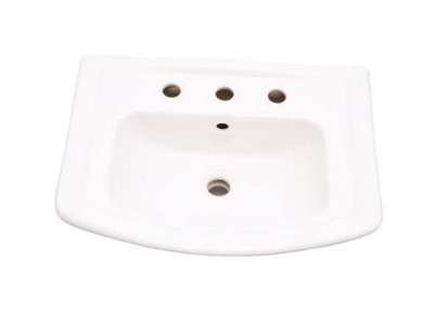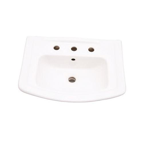 Barclay Lavatory Basin Only, Washington™ 550 Collection, Rectangle Shape, 15-1/4 in W x 9 in D x 6 in H Bowl, 3 Faucet Holes, 8 in Faucet Hole Spacing, 1 Basins, 22 in W x 16-1/2 in D Overall, Wall Mounting, Vitreous China, White, ADA Compliance: No, Domestic/Import: Import