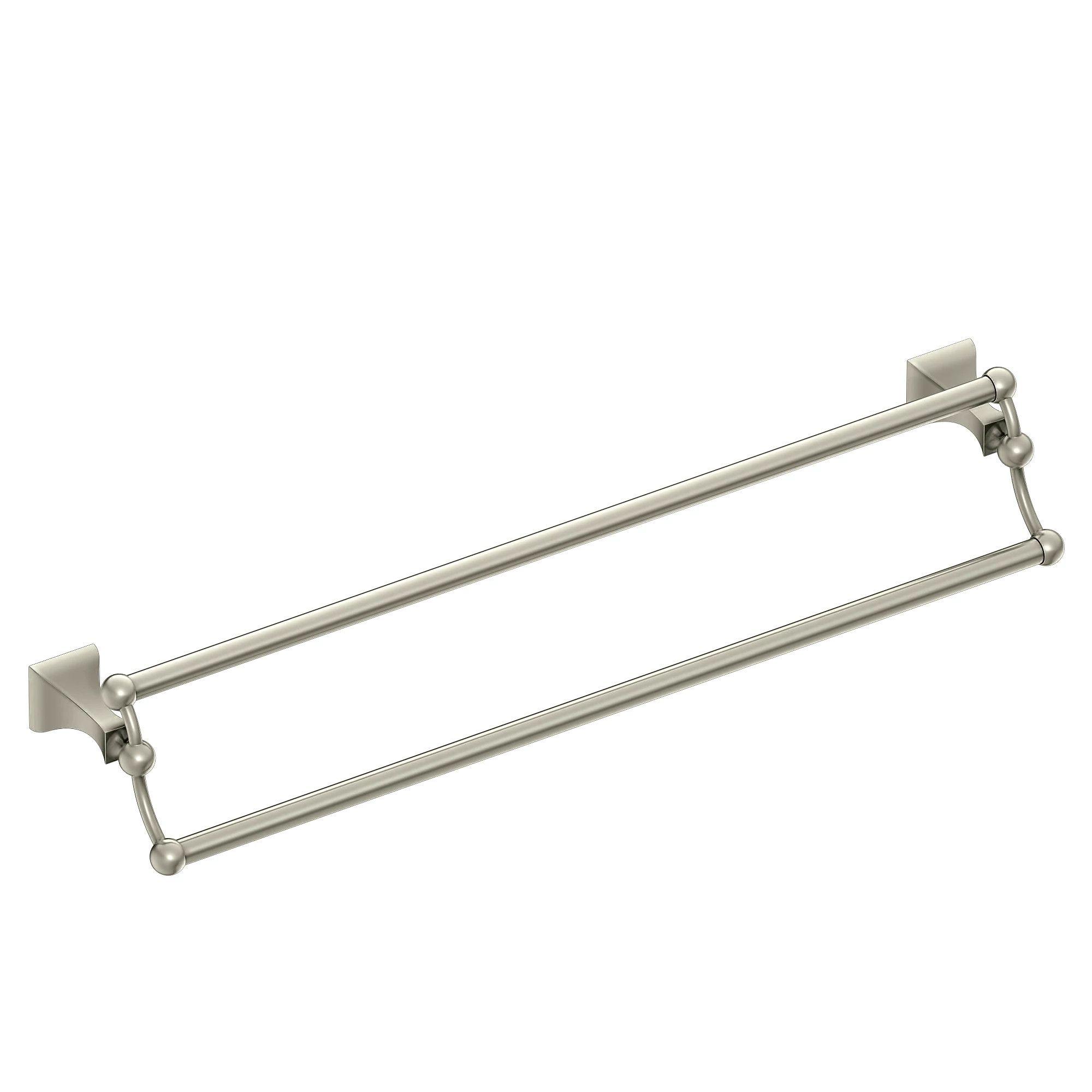 Moen® DN8322BN Double Towel Bar, Retreat®, 24 in L Bar, 5.21 in OAD x 4.2 in OAH, Brass, Brushed Nickel, Import