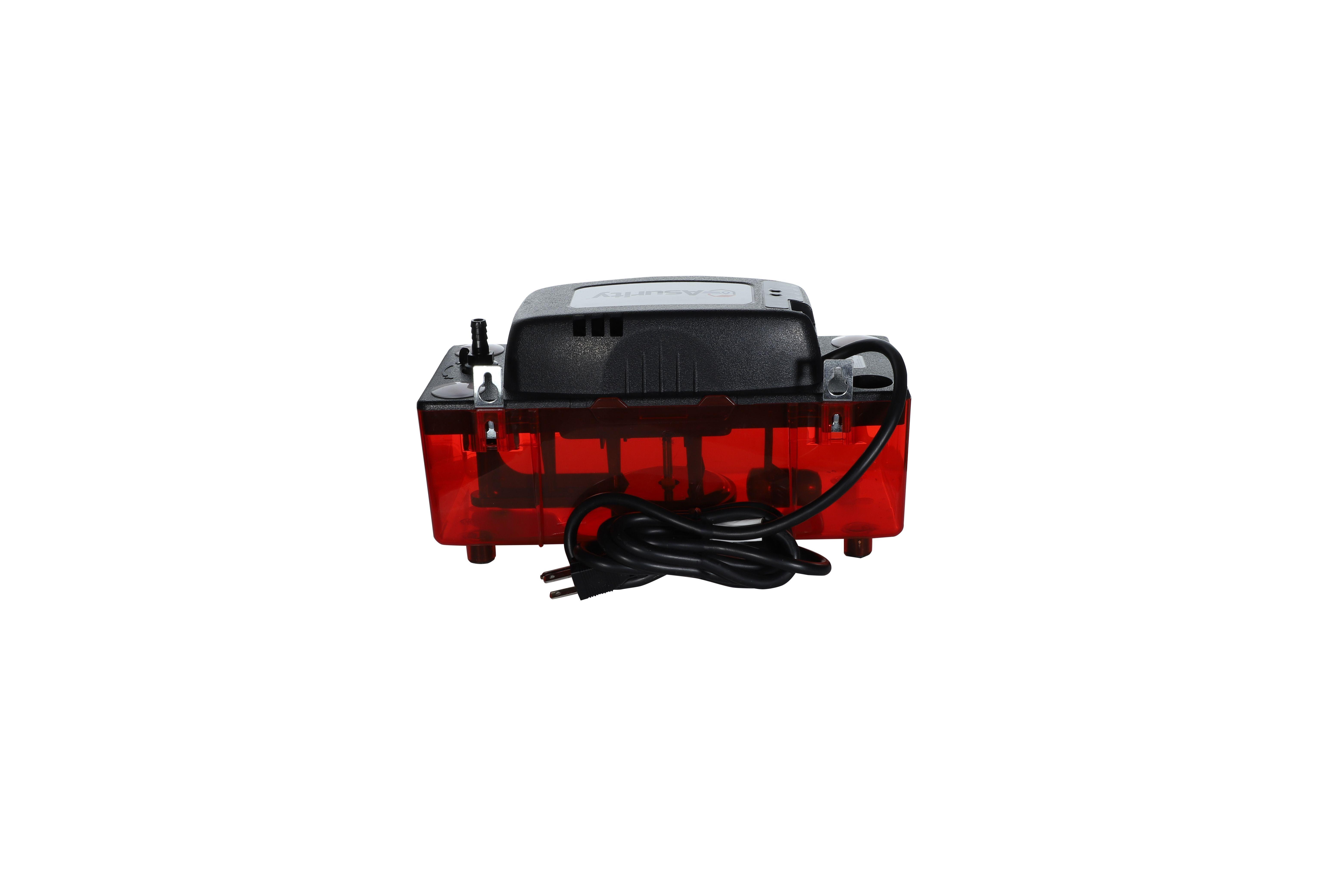 Asurity, ULTRAIQP, Condensate Pump, Series: ULTRAIQP, 132 gph Flow Rate, 3/8 in Outlet, 1/30 hp Power, 120 V AC, 60 Hz, 1.9 A Electrical Rating, 1/2 gal Reservoir, Red