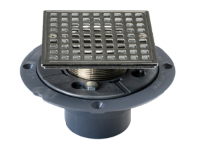 Sioux Chief 821-2PQCP 2 inch PVC Square Shower Drain with Clamping Collar - Chrome
