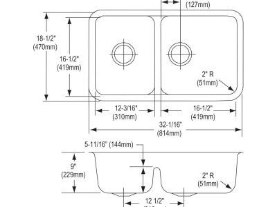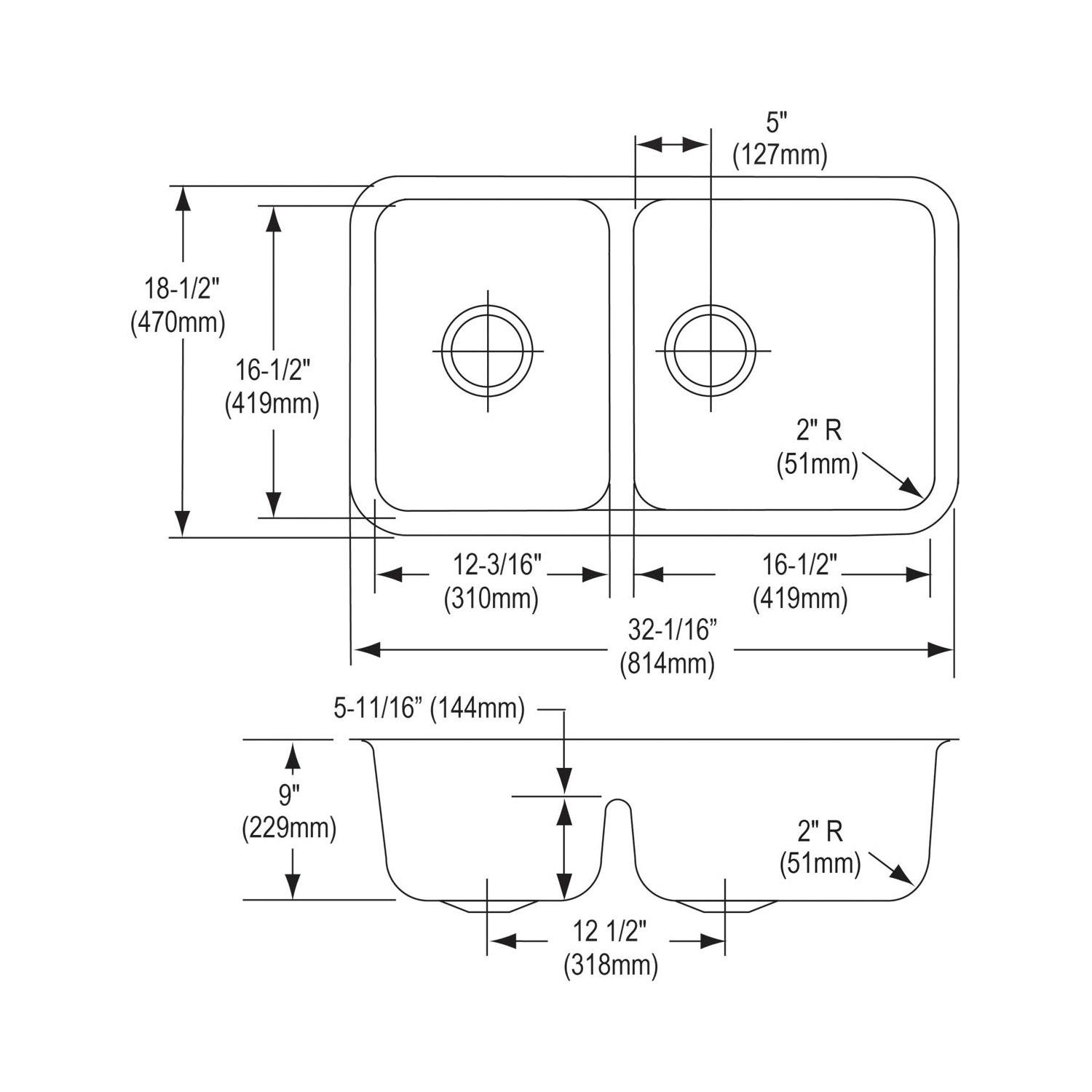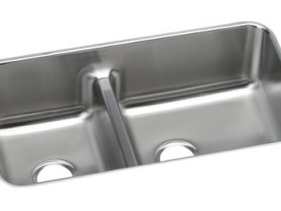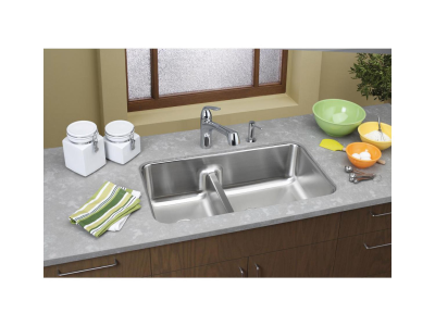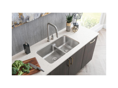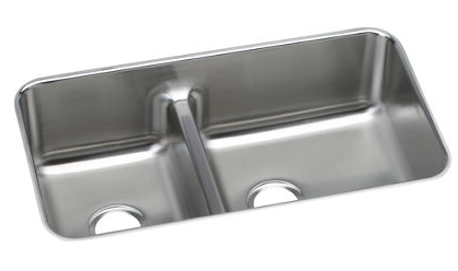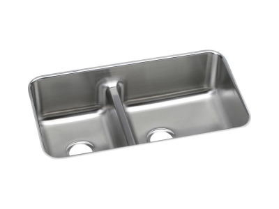 Elkay®, ELUHAQD32179, Kitchen Sink, Lustertone™ Classic Collection, Rectangle Shape, 12-3/16 in Left, 16-1/2 in Right Bowl Length, 16-1/2 in Left, 16-1/2 in Right Bowl Width, 9 in Left, 9 in Right Bowl Depth, 3-1/2 in Drain Opening, 2 Bowls, 32-1/16 in L x 18-1/2 in W x 9 in H Overall, Undermount Mounting, 18 ga 304 Stainless Steel, Import
