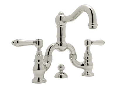 Rohl A1419XMPN-2 Acqui Deck Mount Bridge Bathroom Faucet - Polished Nickel with Cross Handle