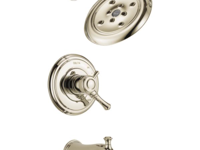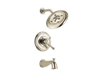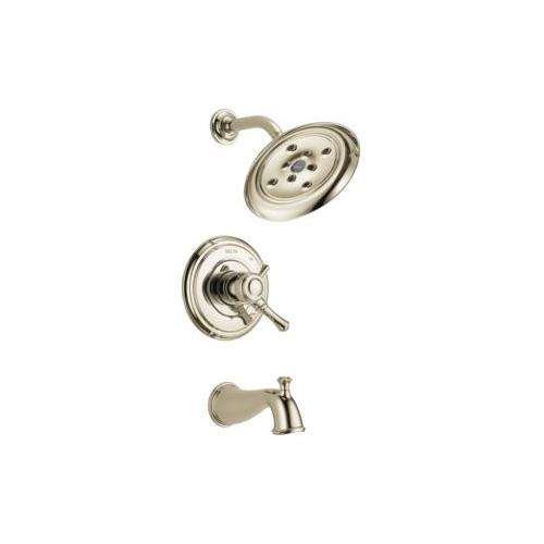DELTA® Tub and Shower Trim, Series: Monitor® 17, Cassidy™ Collection, 1.75 gpm Shower Flow Rate, Pull-Up Diverter Spout, 6-1/2 in Spout Reach, 7-2/3 in Spout Height, 1 Handles, Metal Lever Handle, 7 in Dia Trim, 1222 Pressure Balanced, Hand Shower: No, Spray Pattern: H2Okinetic®, 1 Spray Functions, Wall Mounting, Solid Brass, Brilliance® Polished Nickel, Domestic