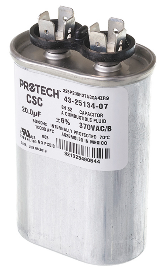 Ruud 43-25134-07 20/370 Single Oval Capacitor
