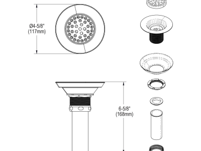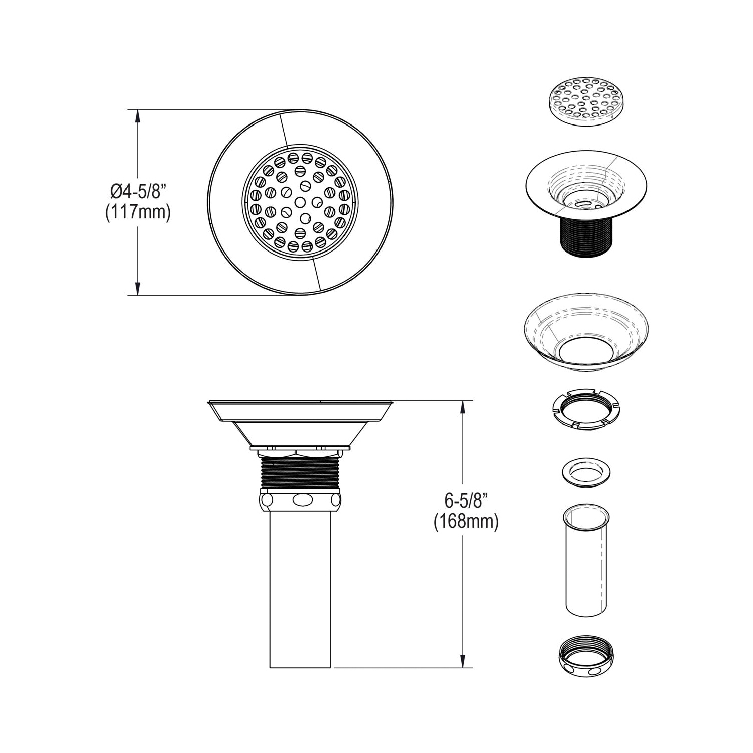 Elkay® Drain Fitting, 3-1/2 in Nominal, Brass Drain, 3 in Grid, Overflow Yes/No: No, Includes Lift Rod: No, Nickel Plated, 4-5/8 in L x 4-5/8 in W x 6-5/8 in H Dimensions, Import