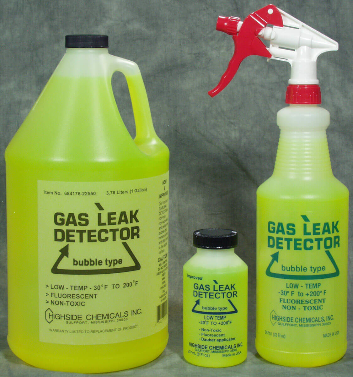 This non-hazardous gas leak detector is now non-toxic and does not contain ethylene glycol. Leaks appear as large strong bubbles which cling to the surface and are fluorescent under a black light. For use on equipment containing most gases: air, natural gas, all refrigerants (R-12, R-134A, R-22, R-502, etc.), ammonia, SO2, etc.