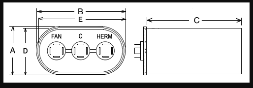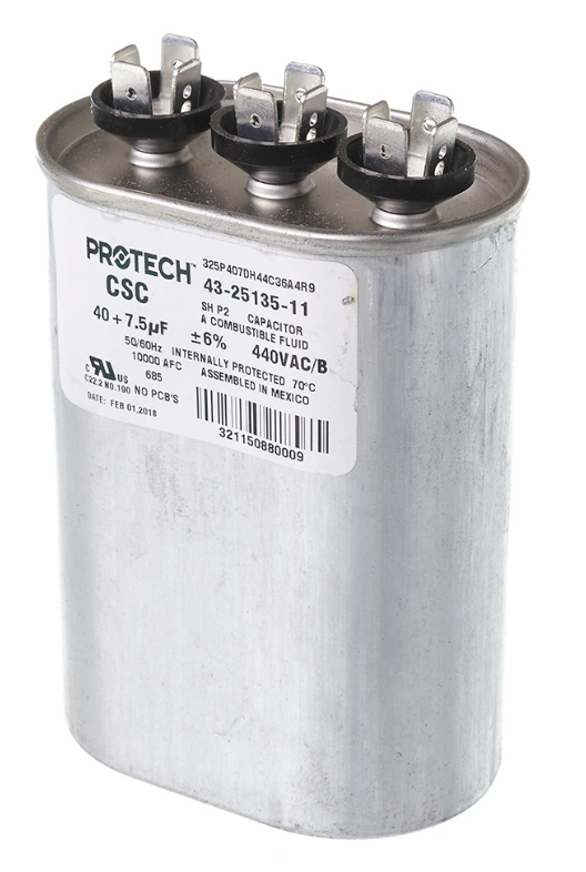 Ruud 43-25135-11 40/7.5/440 Dual Oval Capacitor