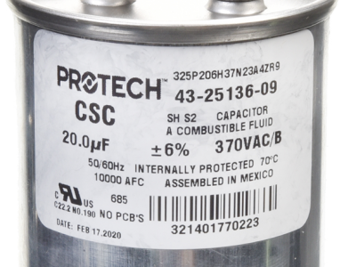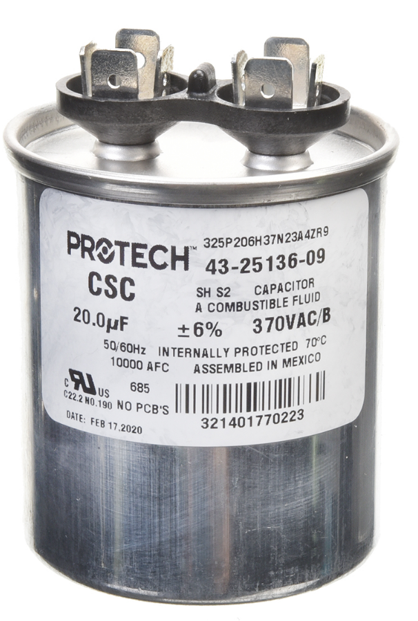 Ruud 43-25136-09 20/370 Single Round Capacitor