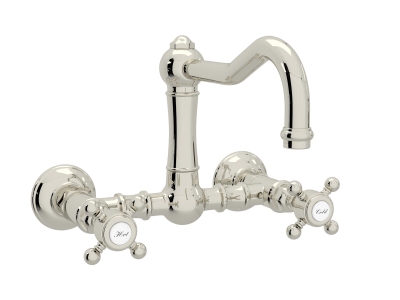 Rohl®, A1456XMPN-2, Kitchen Faucet, Acqui Collection, 1.5 gpm Flow Rate, Column Spout, Wall Mounting, Polished Nickel