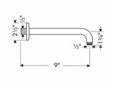 Hansgrohe Showerarm, Raindance Collection, 9 in Arm Length, Specifications: 1/2 in FNPT Inlet, Solid Brass, Polished Chrome