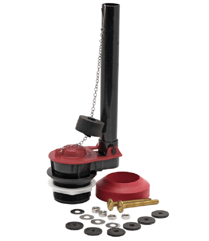 Includes a PRO55 flapper, flush valve, tank-to-bowl hardware, and tank-to-bowl gasket - Fits most 2 inch tank outlets - Adjustable float controls tank water level - Kink free stainless steel chain - Chlorine resistant flapper