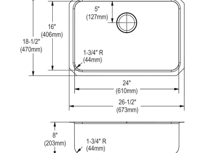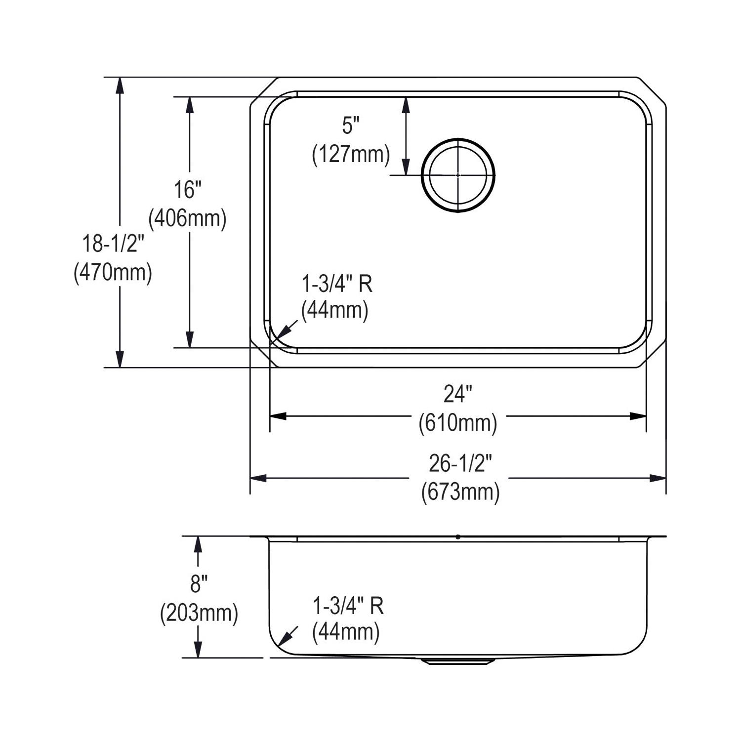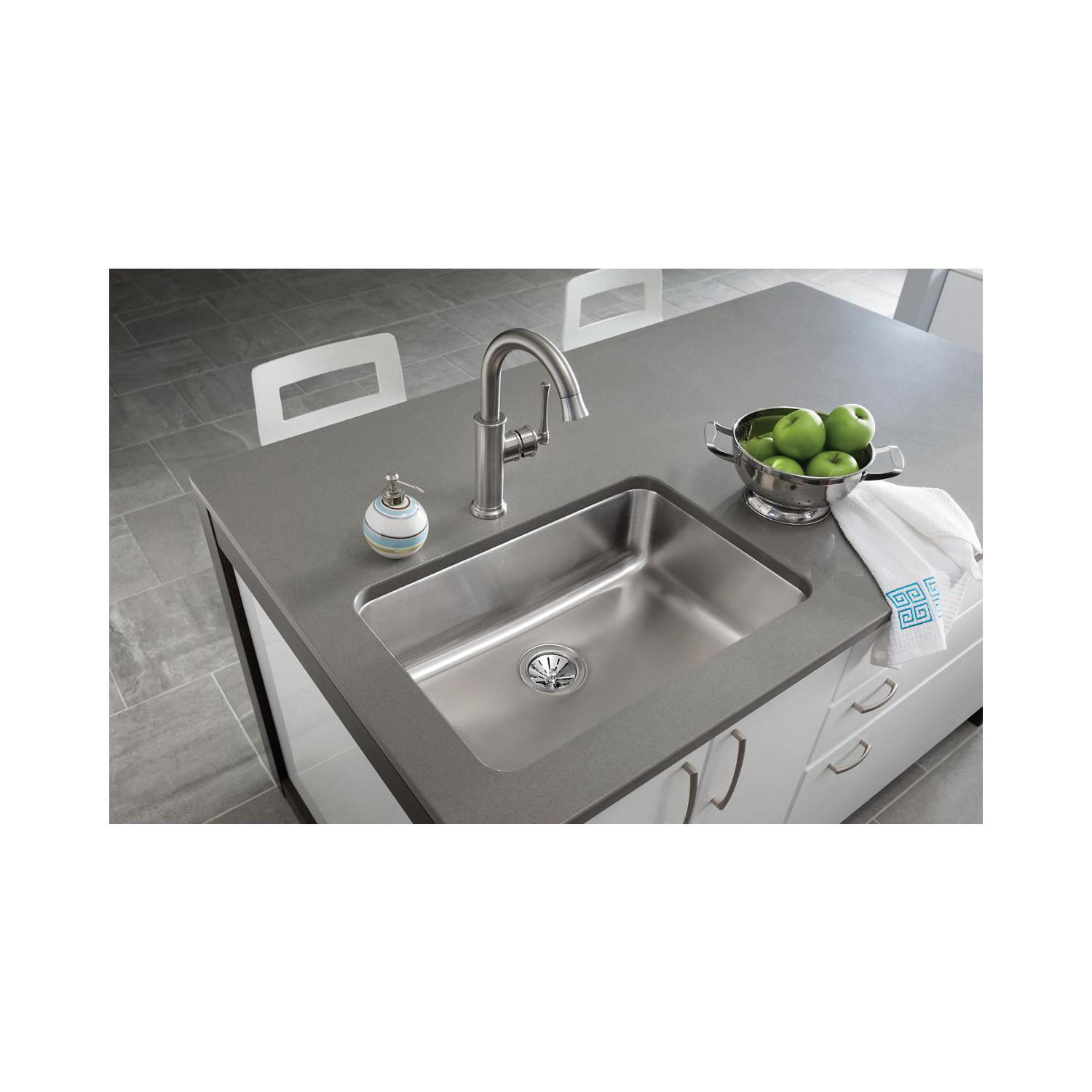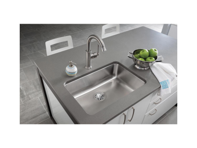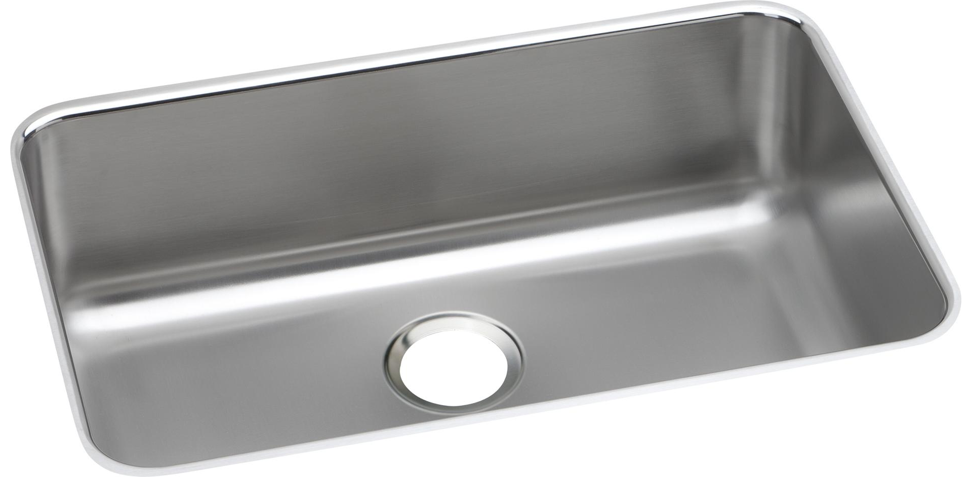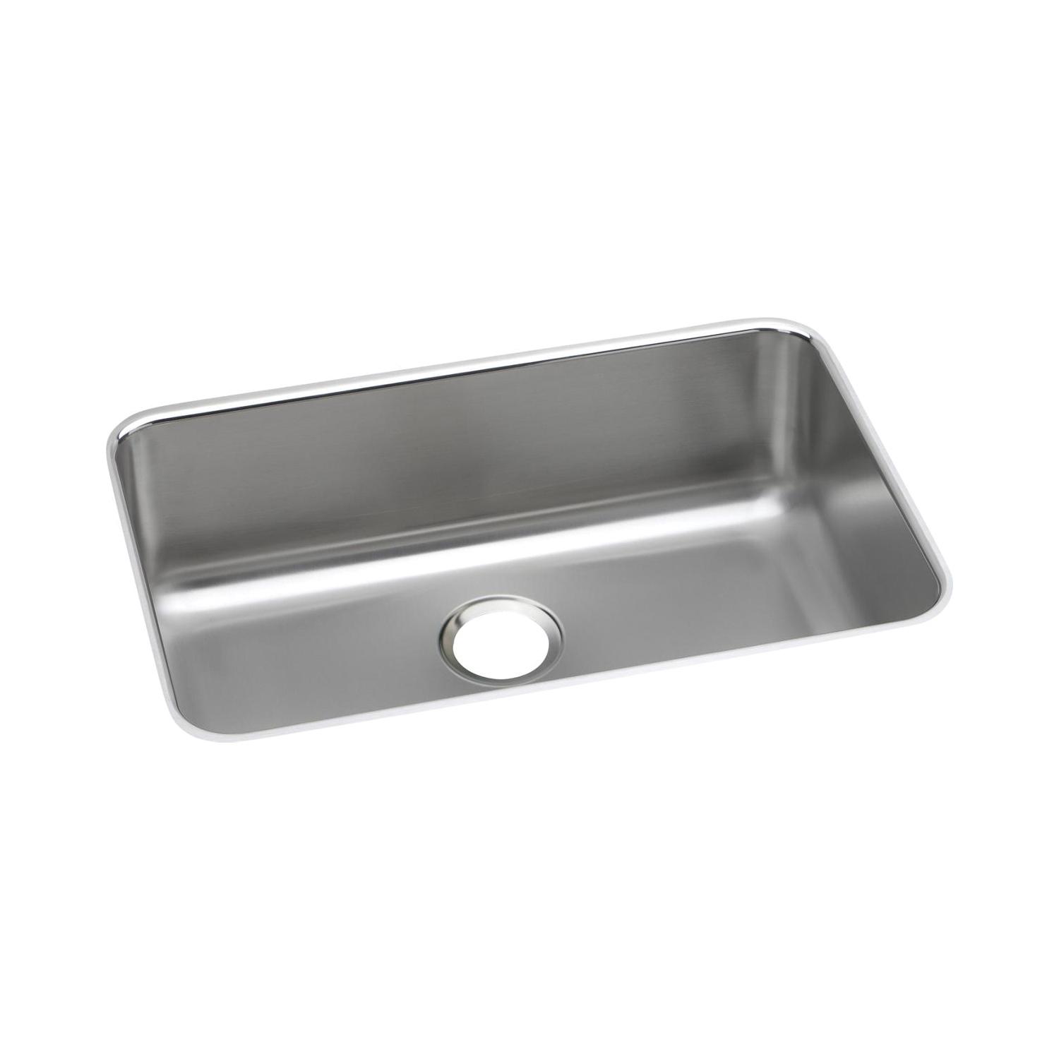 Elkay®, ELUH2416, Kitchen Sink, Lustertone™ Classic Collection, 24 in Bowl Length, 16 in Bowl Width, 8 in Bowl Depth, 3-1/2 in Drain Opening, 1 Bowls, 26-1/2 in L x 18-1/2 in W x 8 in H Overall, Undermount Mounting, 18 ga 304 Stainless Steel, Domestic