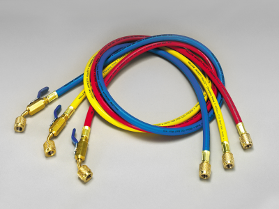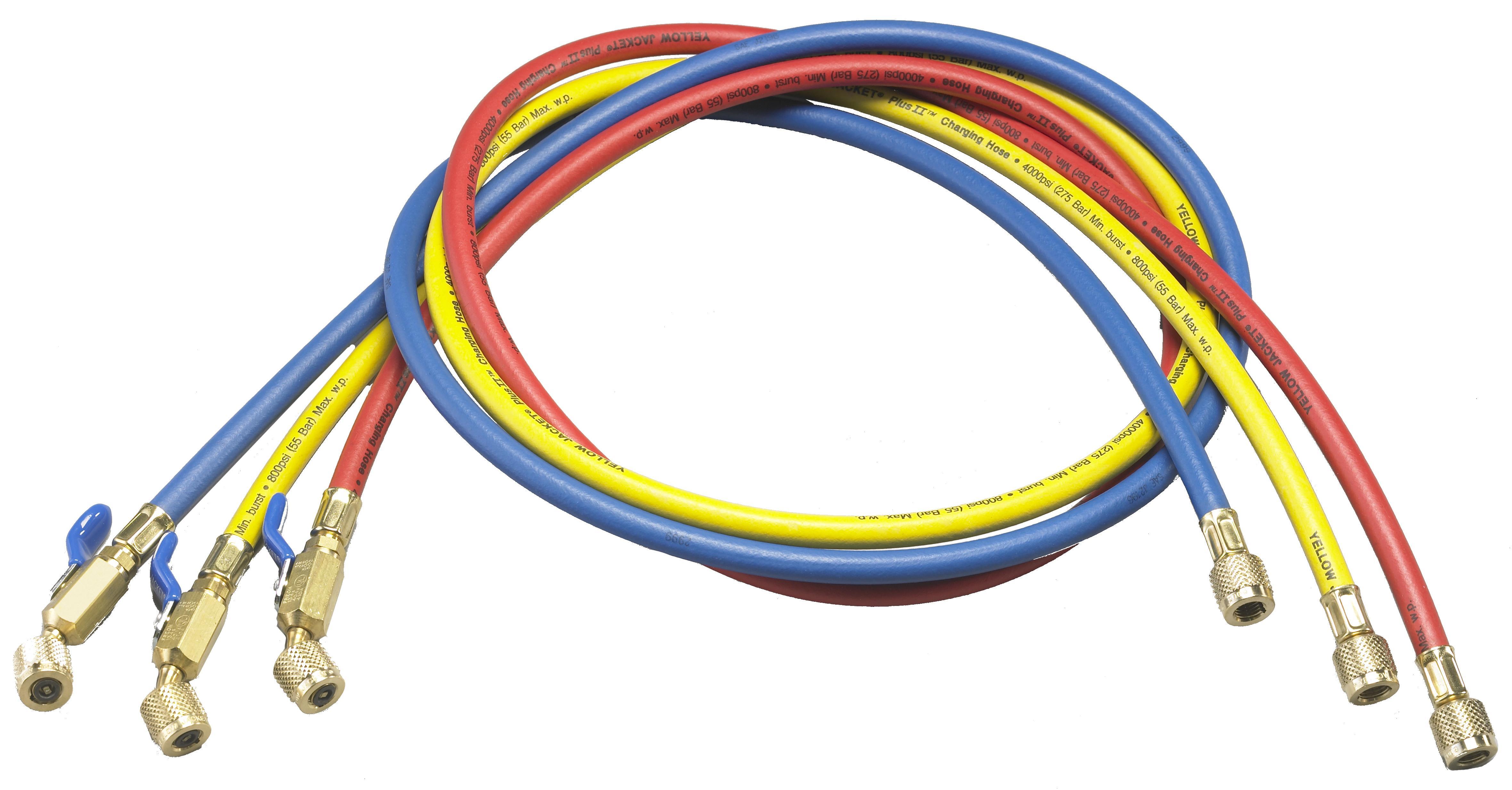 Yellow Jacket® PLUS II™ Hose, 1/4 in Inside Dia, 60 in Length, -20 to 180 deg F, 800 psi Working, 4000 psi Burst, Blue/Red/Yellow, Domestic