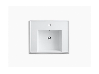Kohler® Bathroom Sink Basin, Tresham®, Squared, 14-1/4 in L x 12-1/2 in W Bowl, 1-3/4 in Drain Opening, 1 Faucet Holes, 1 Basin, 24 in W x 19-1/2 in D x 34-5/8 in H, Wall Mount, Fireclay, White