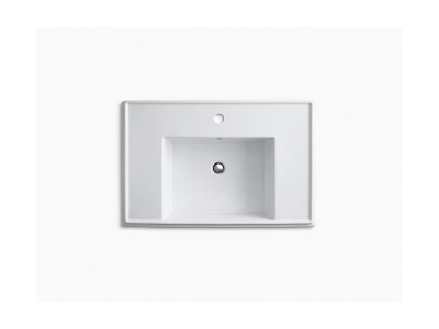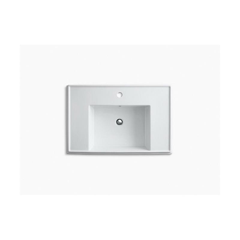 Kohler® Bathroom Sink Basin, Tresham®, Rectangular, 16-3/4 in L x 12-1/2 in W Bowl, 1-3/4 in Drain Opening, 1 Faucet Holes, 1 Basin, 30 in W x 19-1/2 in D x 34-5/8 in H, Wall Mount, Fireclay, White