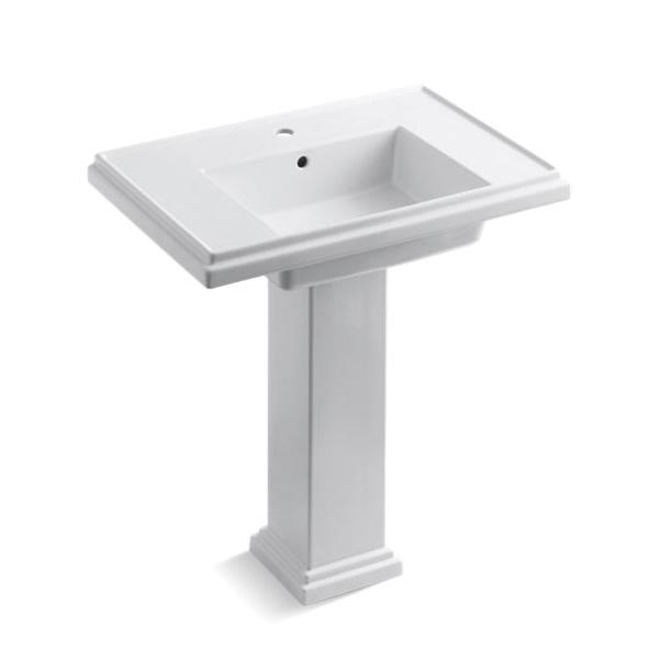 Kohler® 2845-1-0 Tresham® Bathroom Sink Basin With Overflow Drain, Rectangular Shape, 30 in W x 19-1/2 in D x 34-5/8 in H, Wall Mount, Fireclay, White