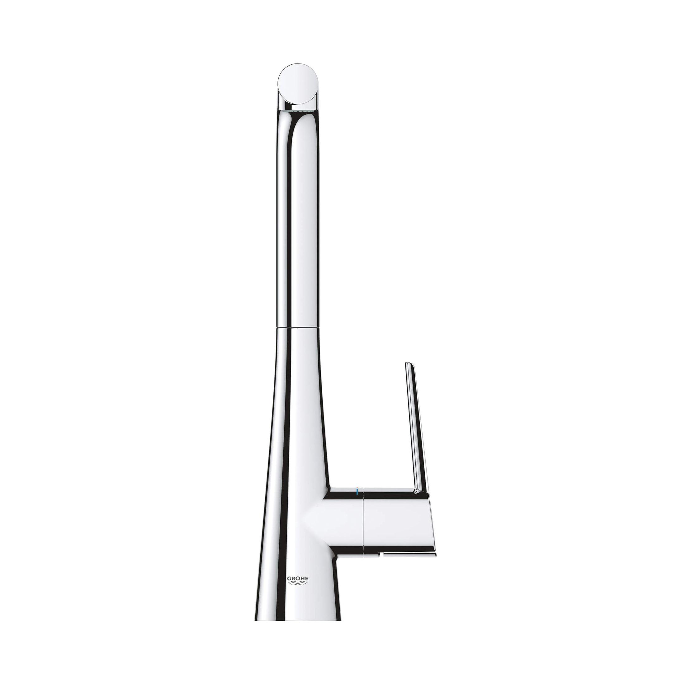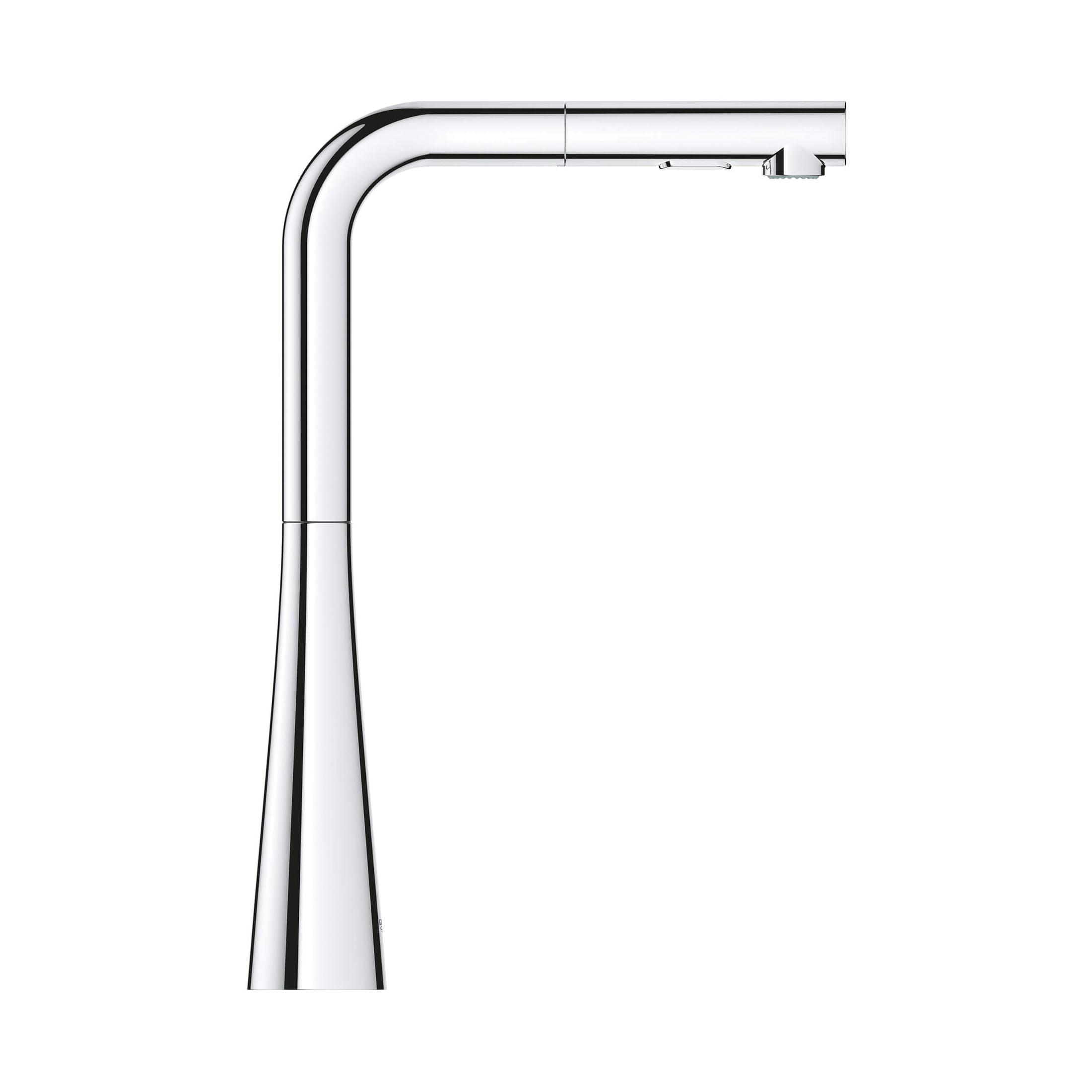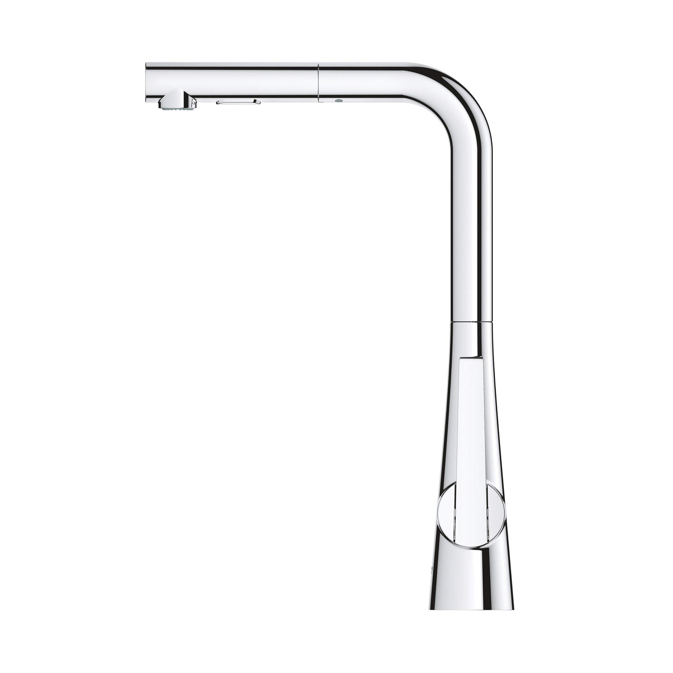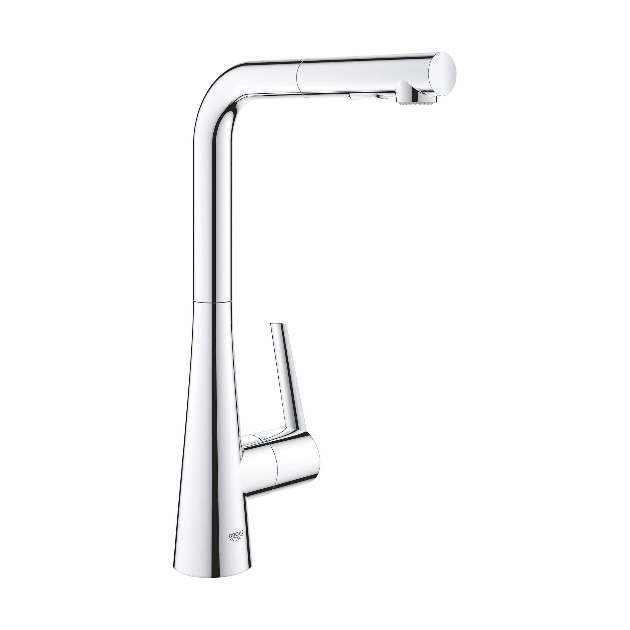 GROHE Kitchen Faucet, Pull-Out, Series: 33893_2, Ladylux® Collection, 1.75 gpm Flow Rate, Swivel Spout, 8-7/16 in Spout Reach, 11-7/8 in Spout Height, Lever Handle, 1 Handle, Side Spray(Y/N): No, 1 Faucet Hole, 1-1/4 in Faucet Hole, 3/8 in x 9/16-24 UNEF Connection, Compression Connection, Spray Pattern: Laminar, 2 Spray Functions, 2-3/8 in Maximum Deck Thickness, Deck Mounting, Ceramic, 8-1/16 in L x 14-2/16 in H Dimensions, Zinc, Polished Chrome, Residential Commercial/Residential