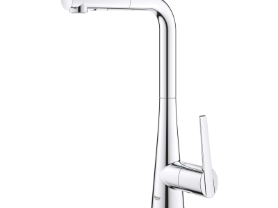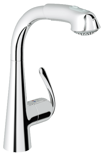 The GROHE Zedra Pull-Out Kitchen Faucet with Dual-Function Spray Head has a contemporary look and innovative technology. This sleek, single-handle faucet features a pull-out spray head with button to easily switch between regular stream and shower spray functions. The Zedra kitchen faucet is the perfect combination of style and substance for today’s home. GROHE Zedra is the new name for Ladylux L2.
