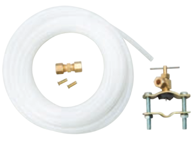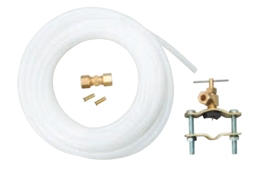 Includes: 25 feet of poly tubing, 1 - self piercing saddle valve, 1 - 1/4 inch compression union, and 2 insert stiffeners