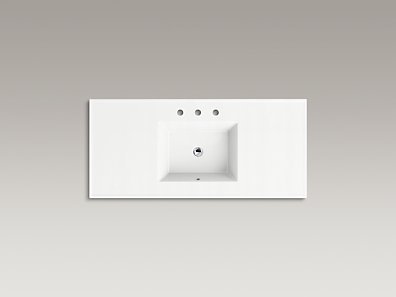 This integrated vanity top and sink offers a beautifully coordinated and easy design solution to reflect your unique bathroom style. With one-piece, seamless construction to simplify cleaning, Ceramic/Impressions vanity-top sinks are available in an array of dimensional color finishes that evoke a rich, spa-like feeling. This top/sink pairs perfectly with the industry-standard vanity sizes of the KOHLER (R) Tailored vanity collection, and the new dimensional finishes are color matched to existing KOHLER vitreous colors.