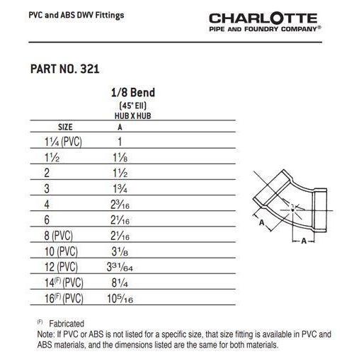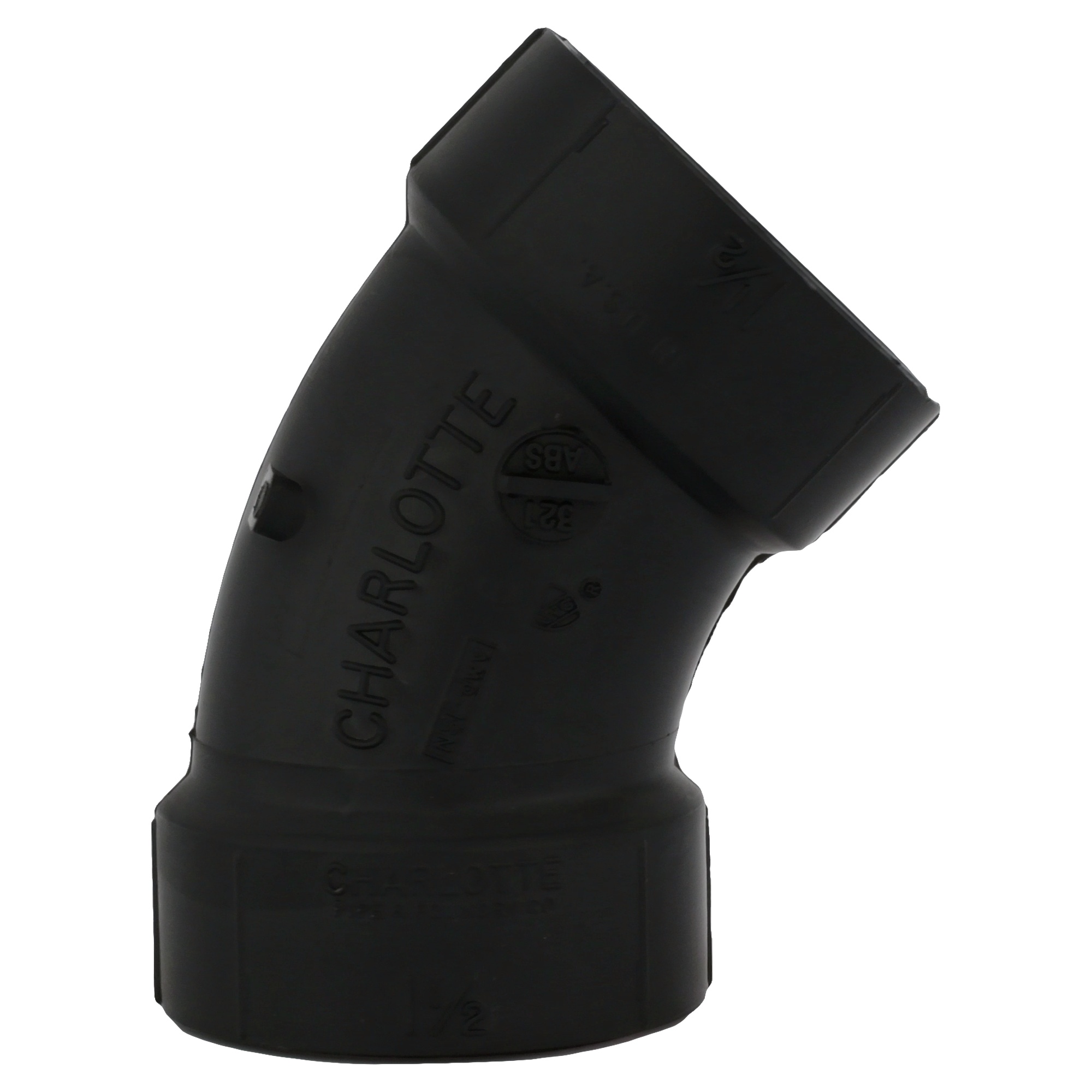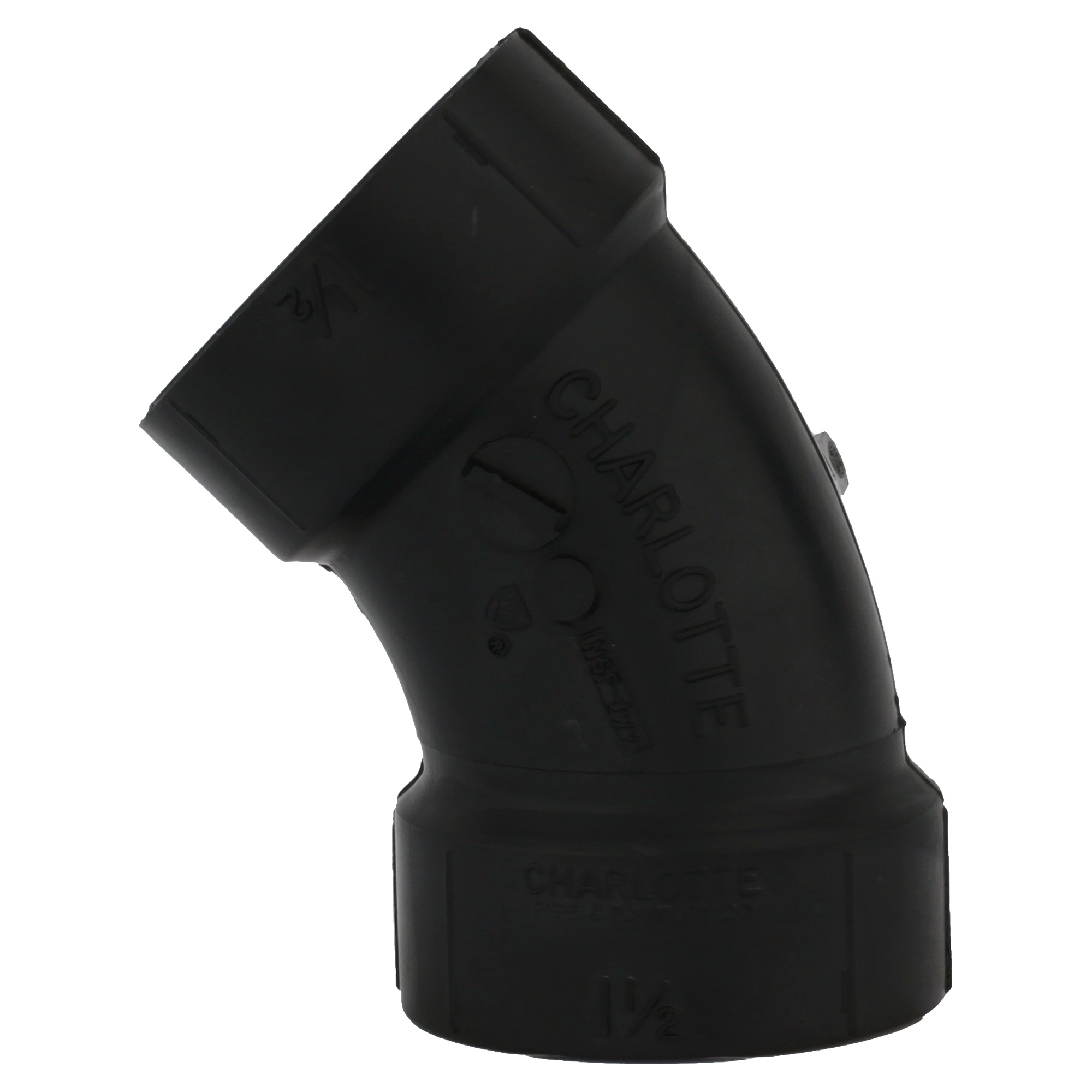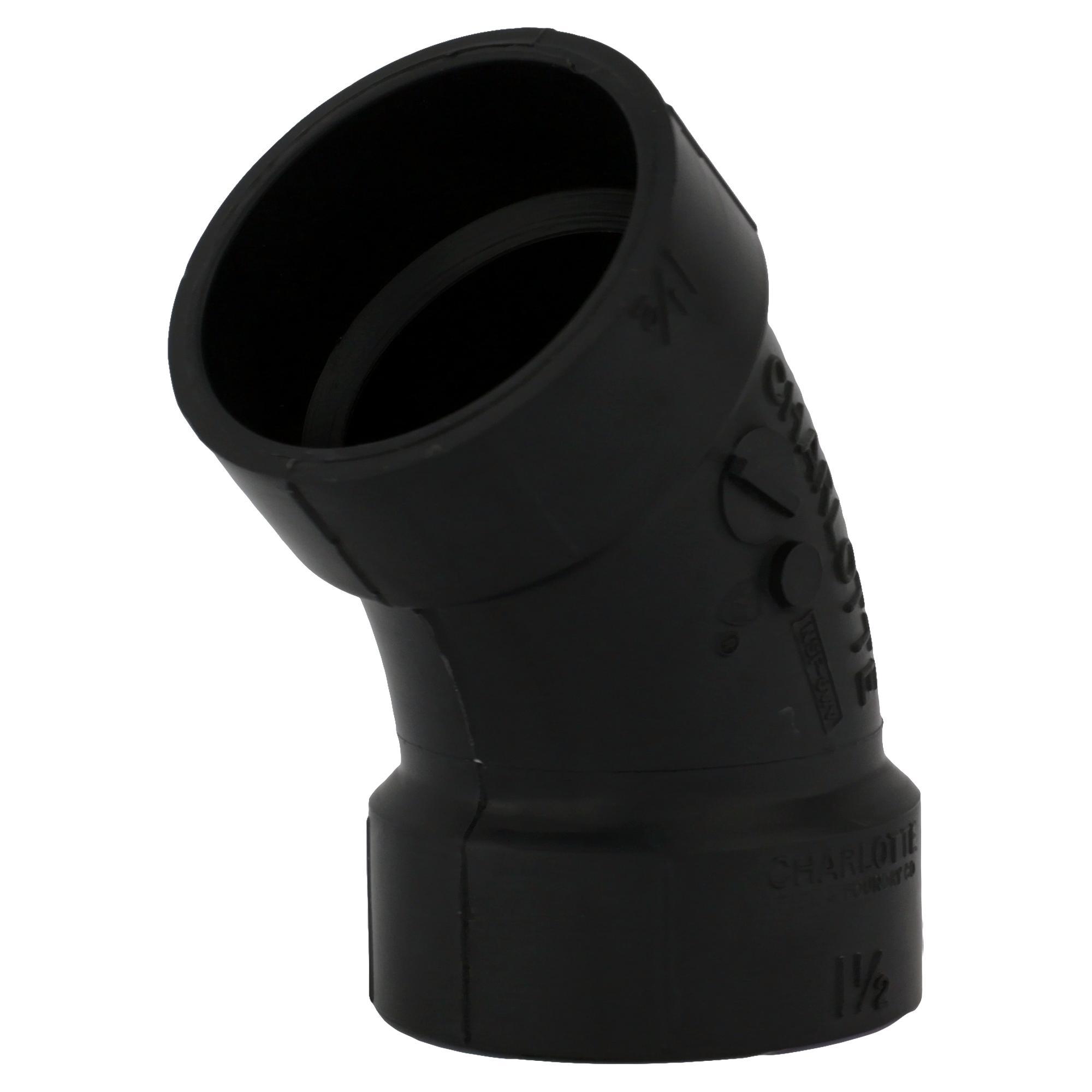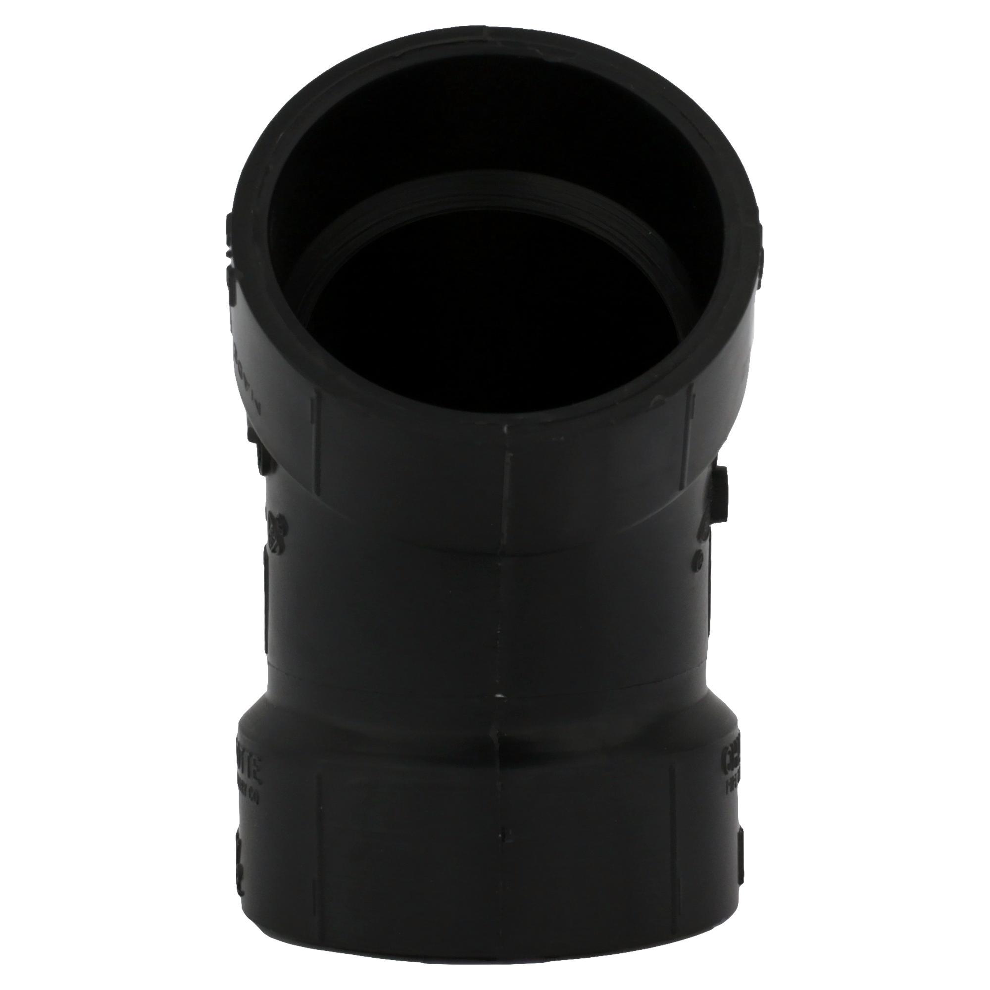 Charlotte Elbow, Fitting/Connector Type: 45 deg Elbow, 1-1/2 in Nominal, Hub End Style, SCH 40/STD Schedule, ABS, Black, 32 to 140 deg F, Domestic