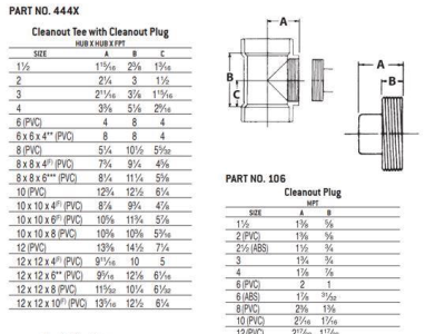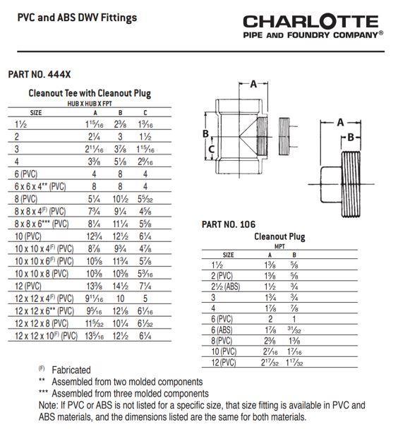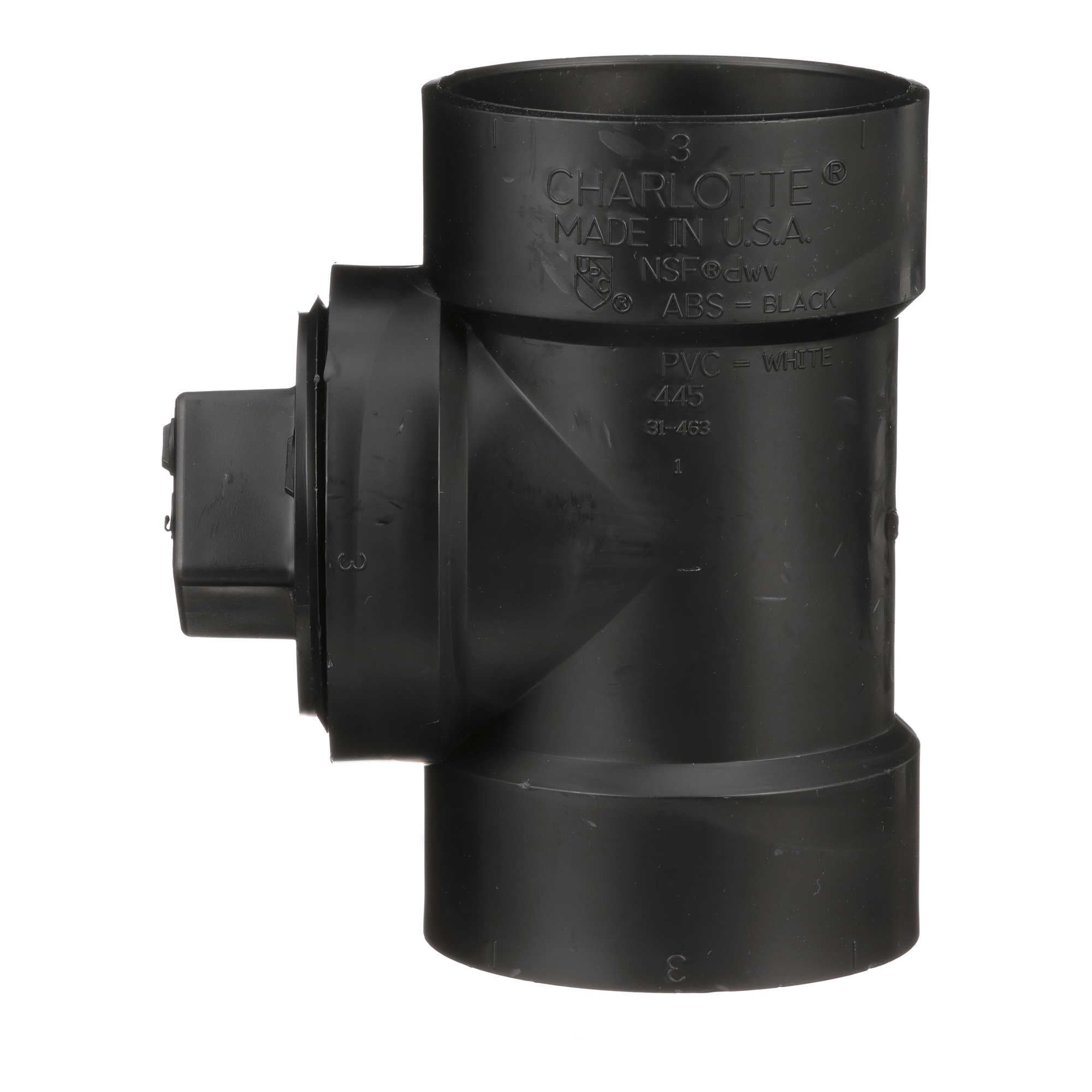 Charlotte ABS 00444X 1000 Cleanout Tee With Cleanout Plug, 3 in Nominal, Hub x Hub x FNPT End Style, SCH 40/STD, ABS