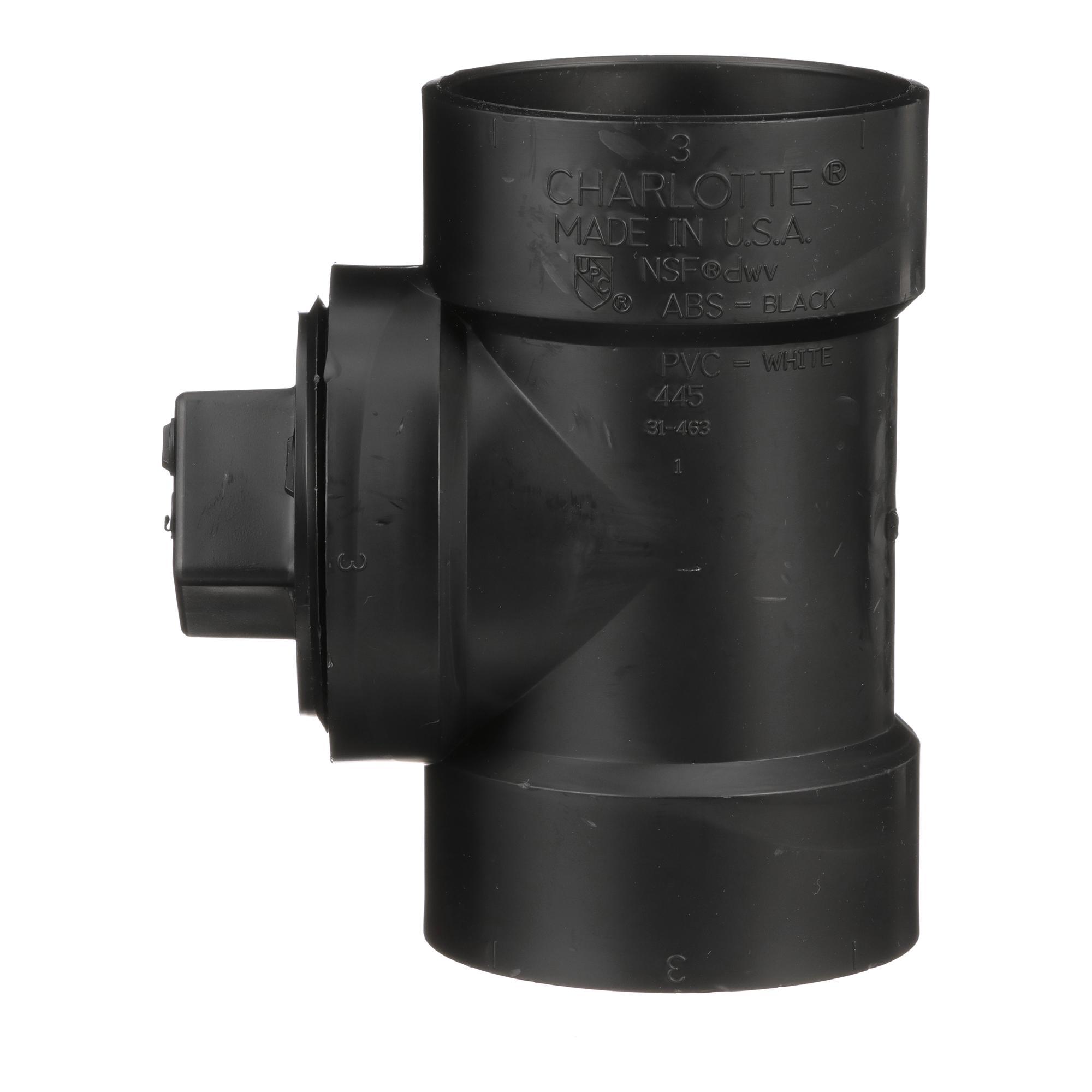 Charlotte Cleanout Tee, Fitting/Connector Type: Tee, 3 in Nominal, Hub x Hub x FNPT End Style, SCH 40/STD Schedule, ABS, Black, 32 to 140 deg F, Domestic