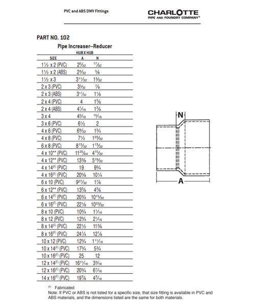 Charlotte ABS 00102 1000 Pipe Increaser/Reducer, 2 x 3 in Nominal, Hub End Style, SCH 40/STD, ABS, Domestic