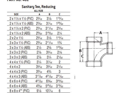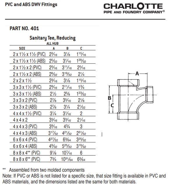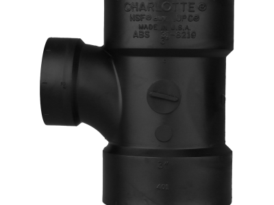 Charlotte ABS 00401 1400 Reducing Sanitary Tee, 3 x 3 x 2 in Nominal, Hub End Style, SCH 40/STD, ABS, Domestic