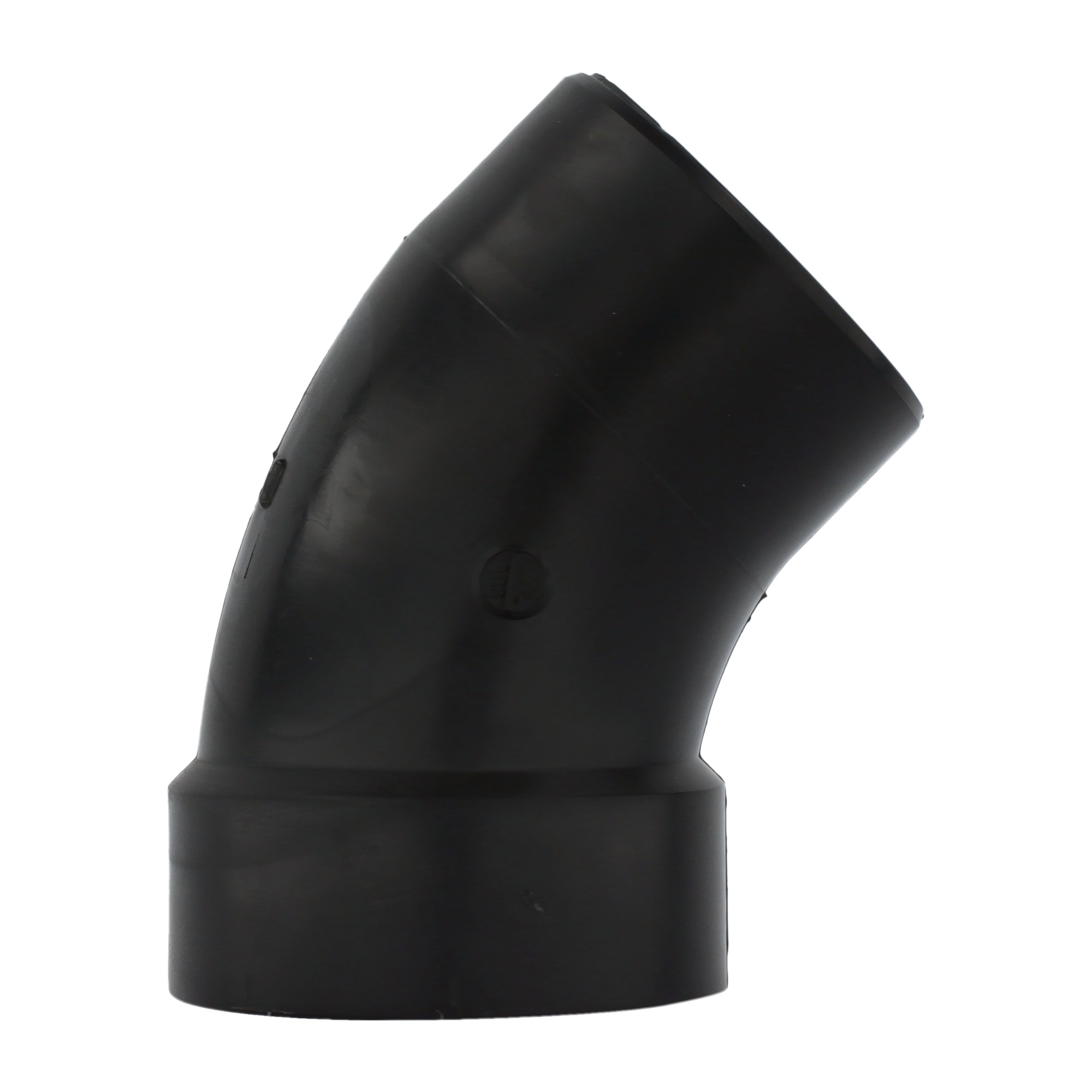 Charlotte Street Elbow, Fitting/Connector Type: 45 deg Elbow, 4 in Nominal, Spigot x Hub End Style, SCH 40/STD Schedule, ABS, Black, 32 to 140 deg F, Domestic