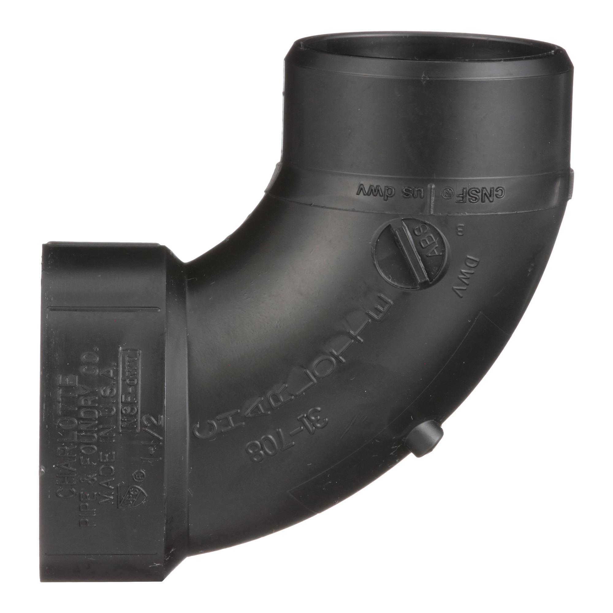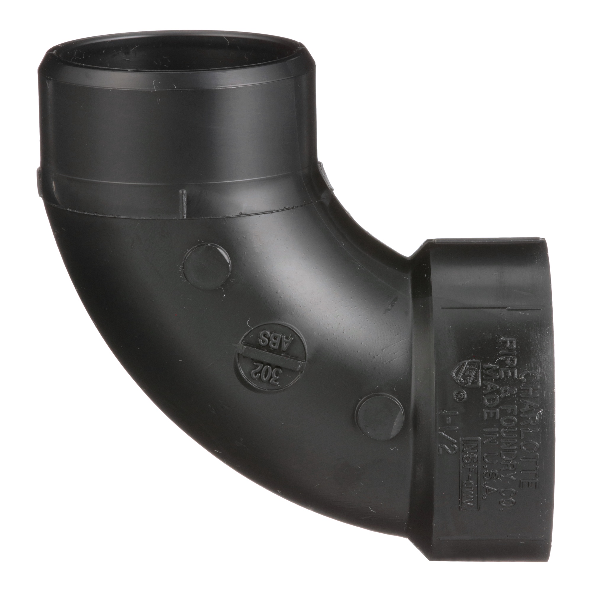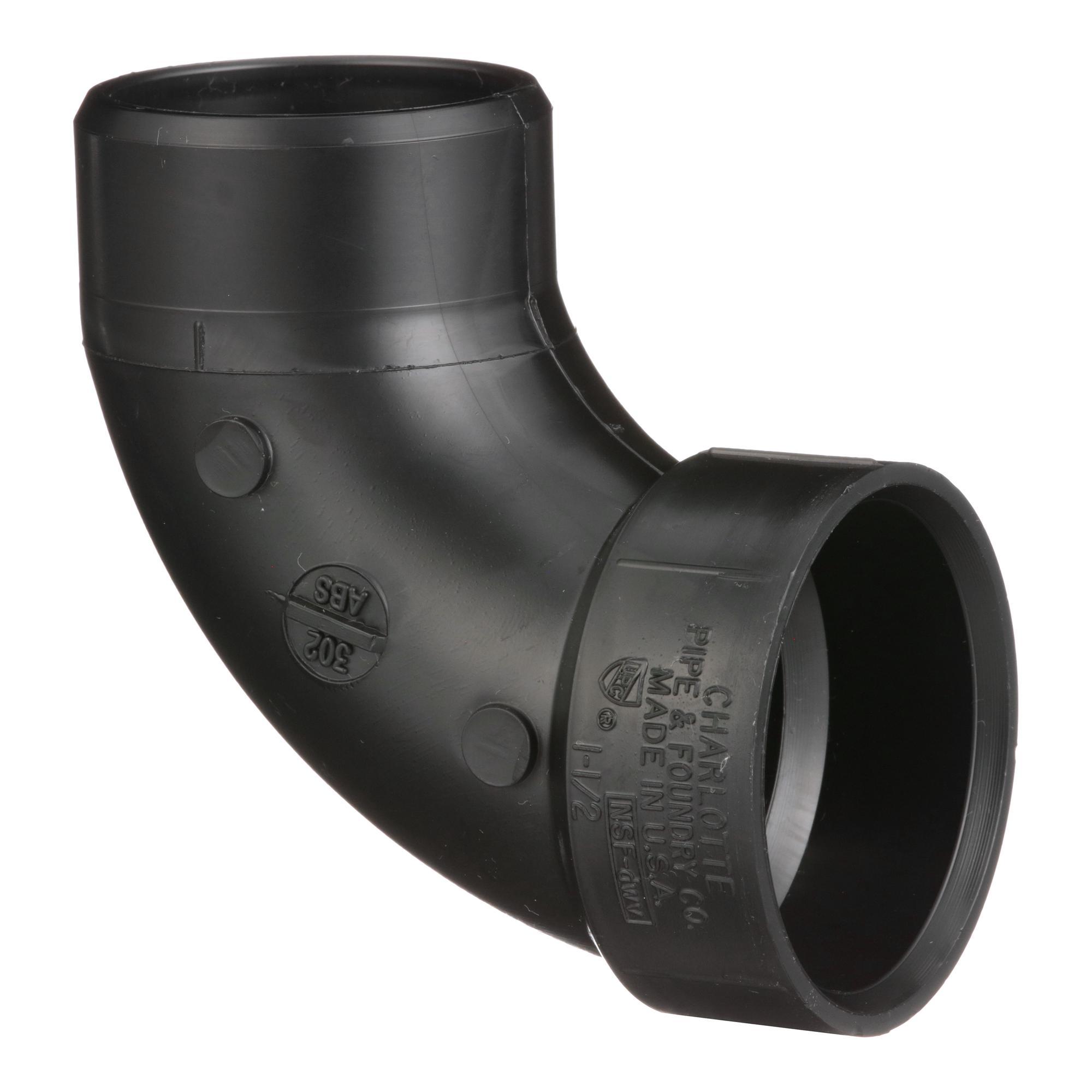 Charlotte Sanitary Street Elbow, Fitting/Connector Type: 90 deg Elbow, 1-1/2 in Nominal, Spigot x Hub End Style, SCH 40/STD Schedule, ABS, Black, 32 to 140 deg F, Domestic