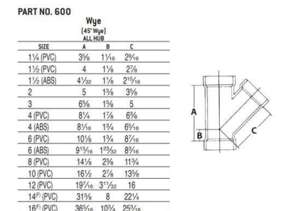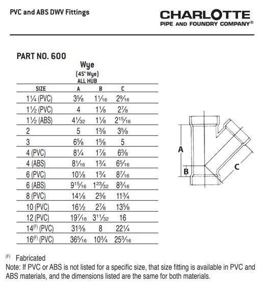 Charlotte, ABS 00600 0800, Wye, Fitting/Connector: Wye, 2 in Nominal, Hub End Style, SCH 40/STD Schedule, ABS, Black, 32 to 140 deg F, Domestic
