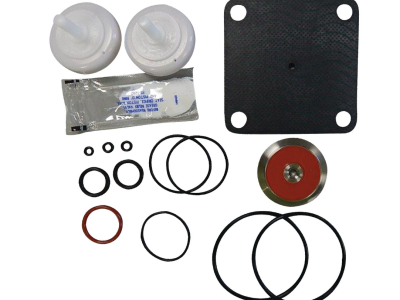 This total rubber parts kit is used for replacing or repairing the relief valve assembly on a lead free reduced pressure backflow assembly series 909 used to prevent the reverse flow of polluted water from entering into the potable water supply due to backsiphonage and or backpressure. This kit consists of a diaphragm, two molded disc assemblies, two seat O-rings, RV O-ring, two piston O-rings, RV stem O-ring, flow tube O-ring and cover O-ring.