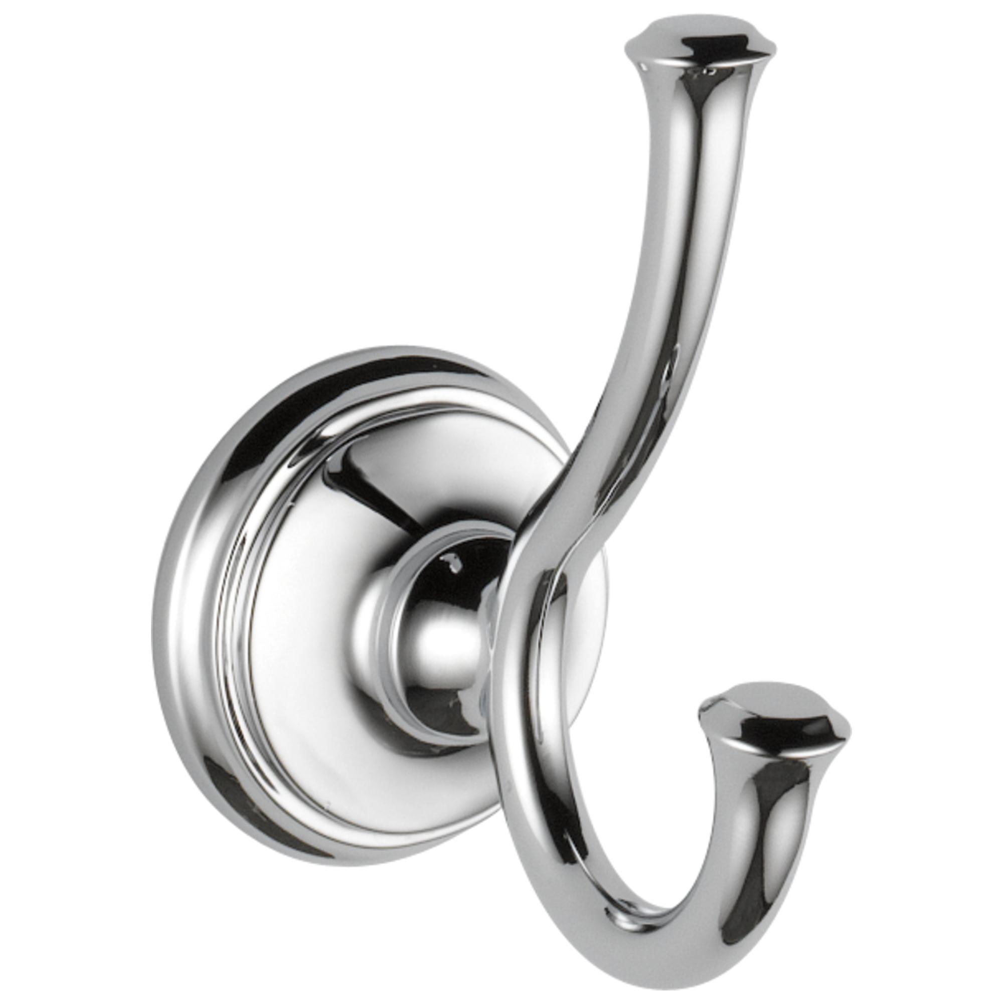 DELTA® Robe Hook, Cassidy™ Collection, 2 Hooks, 2-1/2 in Diameter Base, 2-1/2 in Overall Width, 3-7/8 in Overall Depth, 4-5/8 in Overall Height, Wall Mounting, Brass, Polished Chrome, Import