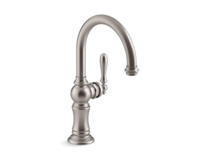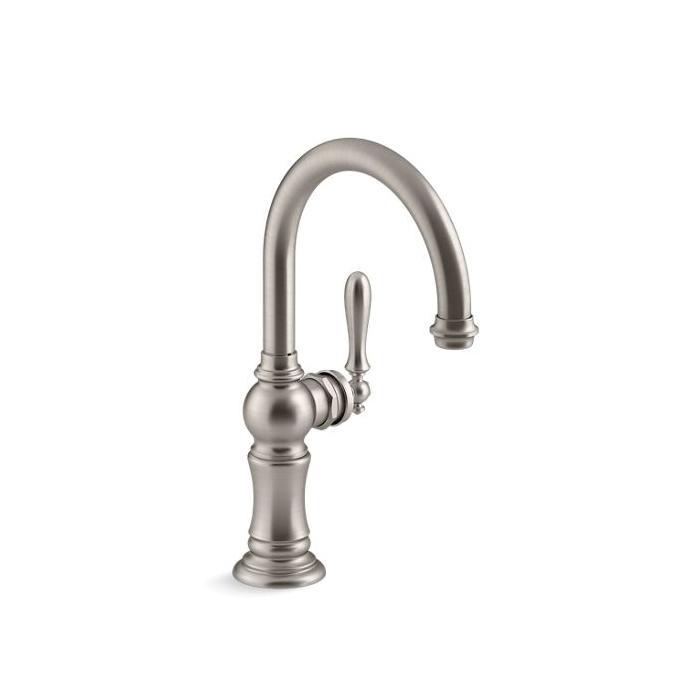 Kohler® Bar Sink Faucet, Traditional, Artifacts® Collection, 1.8 gpm Flow Rate, High-Arc Swivel Spout, 7 in Spout Reach, 13-1/16 in Spout Height, Lever Handle, 1 Handle, 1 Faucet Hole, 3/8 in Connection, Compression Connection, 3-1/4 in Maximum Deck Thickness, Deck Mounting, Ceramic Disc, 7 in L x 2-5/8 in W x 13-1/16 in H, Metal, Vibrant® Stainless Steel