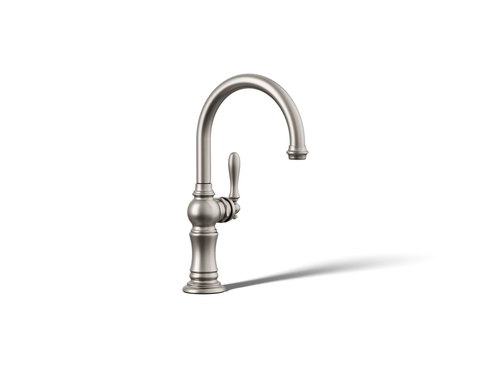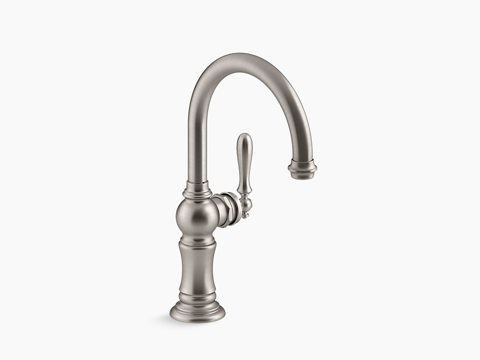 The KOHLER® Artifacts faucet collection brings you classic designs reimagined in fresh new ways for various task areas of the kitchen. This Artifacts deck-mount bar sink faucet displays vintage style with its high-arch swing spout and turned lever handle.