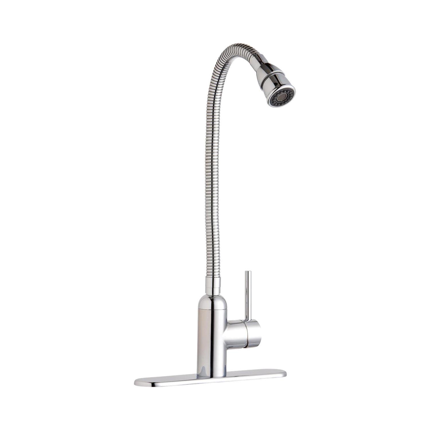 Elkay® Laundry/Utility Faucet, Pursuit™, 1.5 gpm, Flexible Spout, 8-3/8 in Spout Reach, 7-3/8 in Spout Height, Lever Handle, 1 Handle, 1 Faucet Hole, 3/8 in, Compression, Ceramic Disc Valve/Cartridge, 10 in W x 10-1/4 in D x 14-3/8 in H, Brass, Polished Chrome, Import
