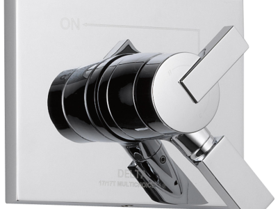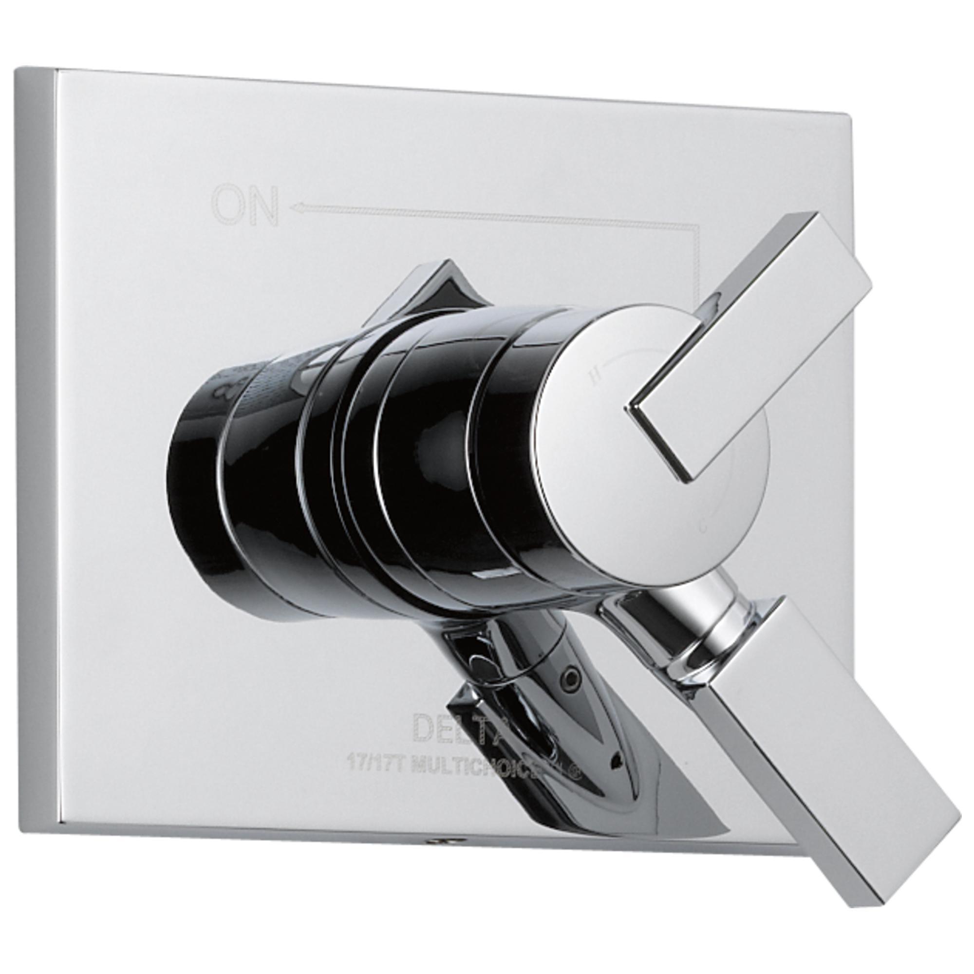 DELTA® Valve Trim, Series: Monitor® 17, Vero® Collection, 2.5 gpm Shower Flow Rate, Lever Handle, 7-3/32 in L x 5-19/32 in W Trim, Dual-Function Pressure Balanced, 80 psi Pressure, For Use With: MultiChoice® R10000 Series Universal Rough-In Valve Body, Brass, Polished Chrome