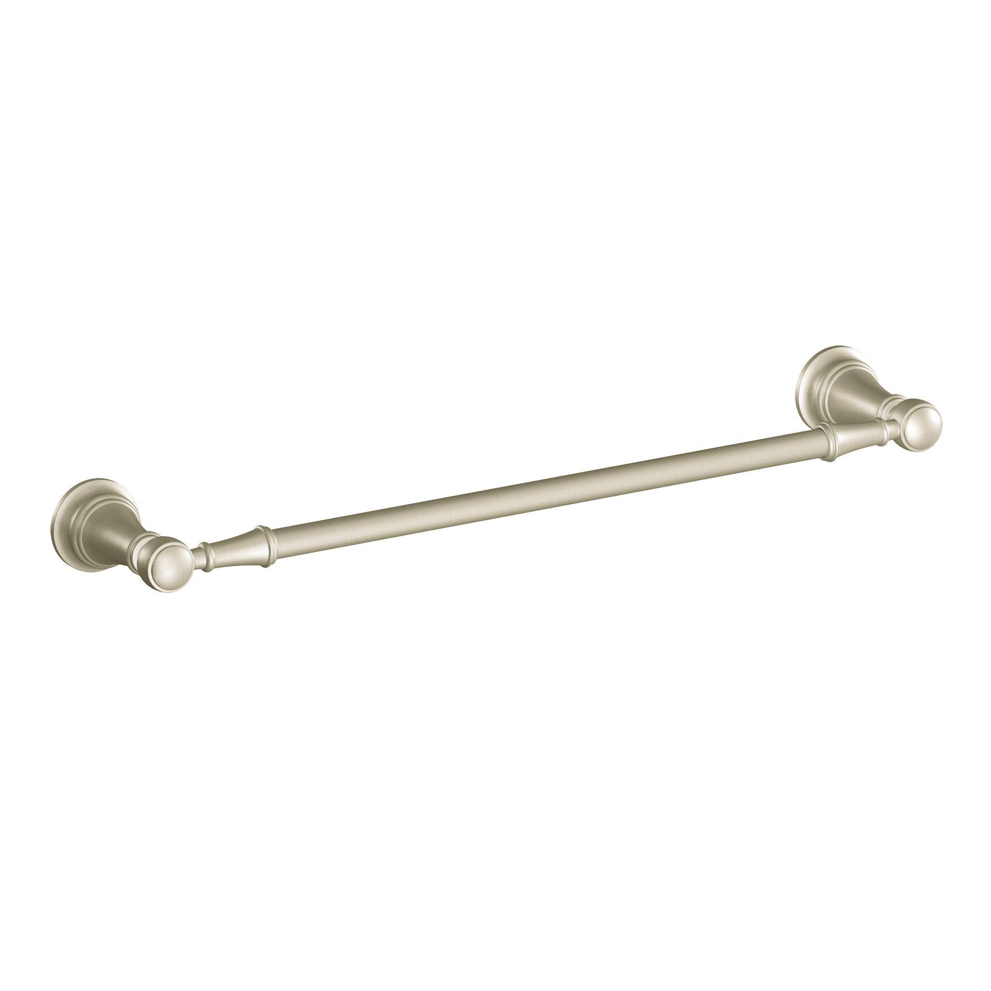 Moen®, YB8424BN, Towel Bar, Series: YB8424, Weymouth™ Collection, 24 in Bar Length, 25.99 in Overall Length, 3.8 in Overall Depth, 1.99 in Overall Height, 1.99 in Base, Brass, Brushed Nickel, Import