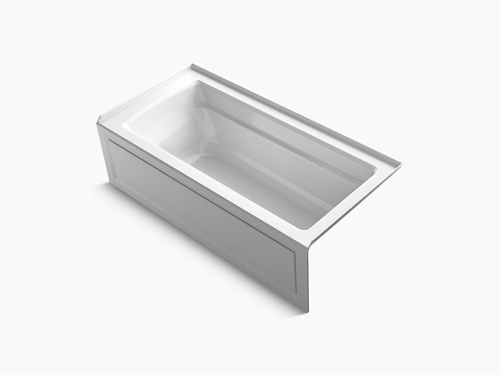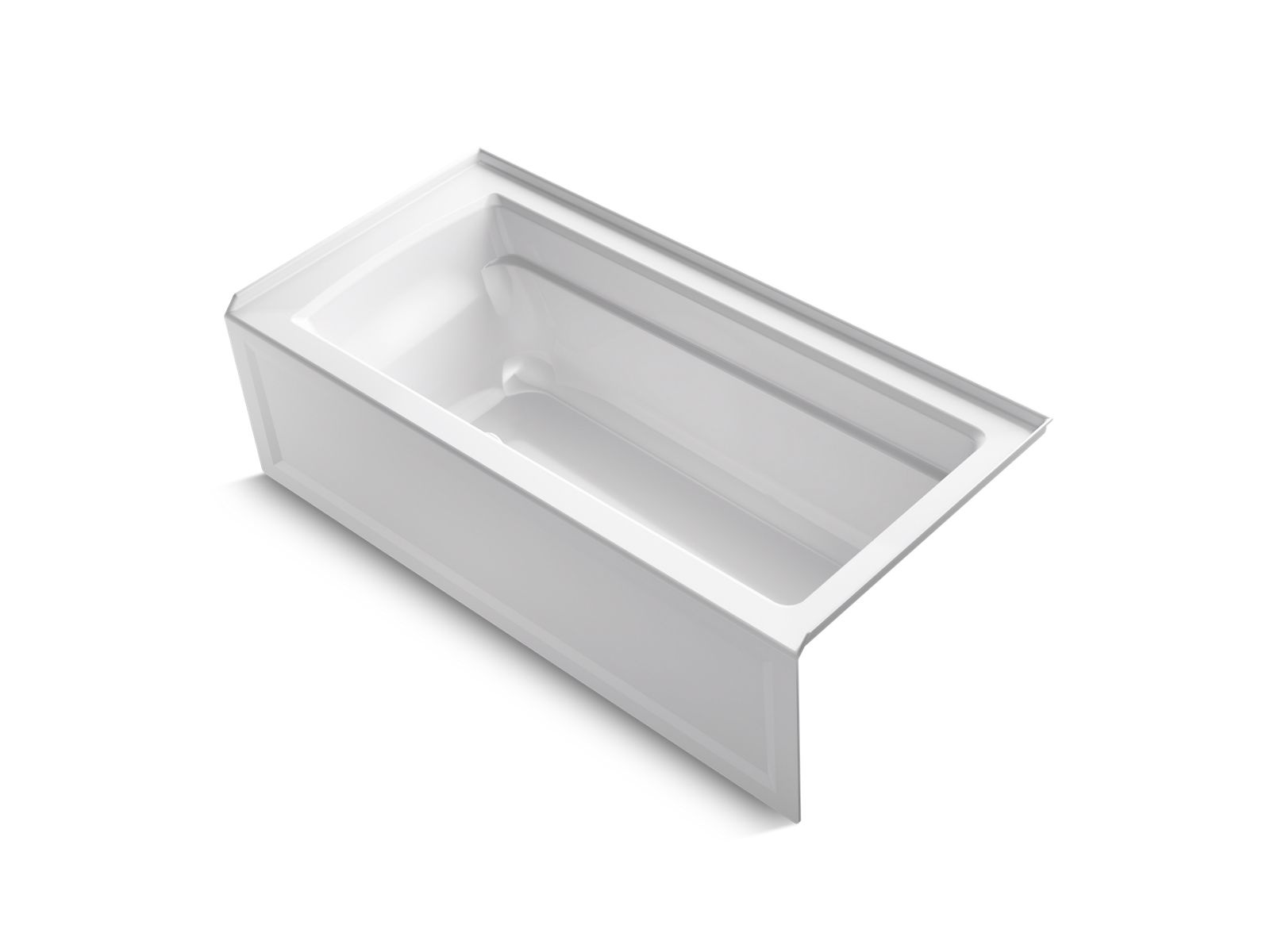 Kohler® 1948-RA-0 Archer® Bathtub With Integral Apron and 3-Side Integral Flange, Soaking Hydrotherapy, Rectangular Shape, 66 in L x 32 in W, Right Drain, White