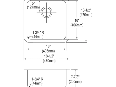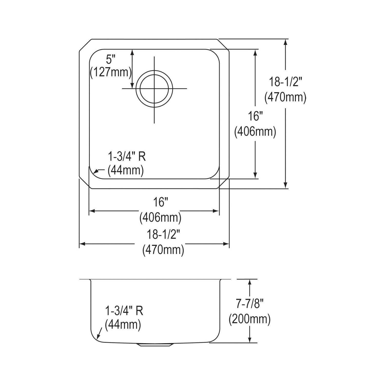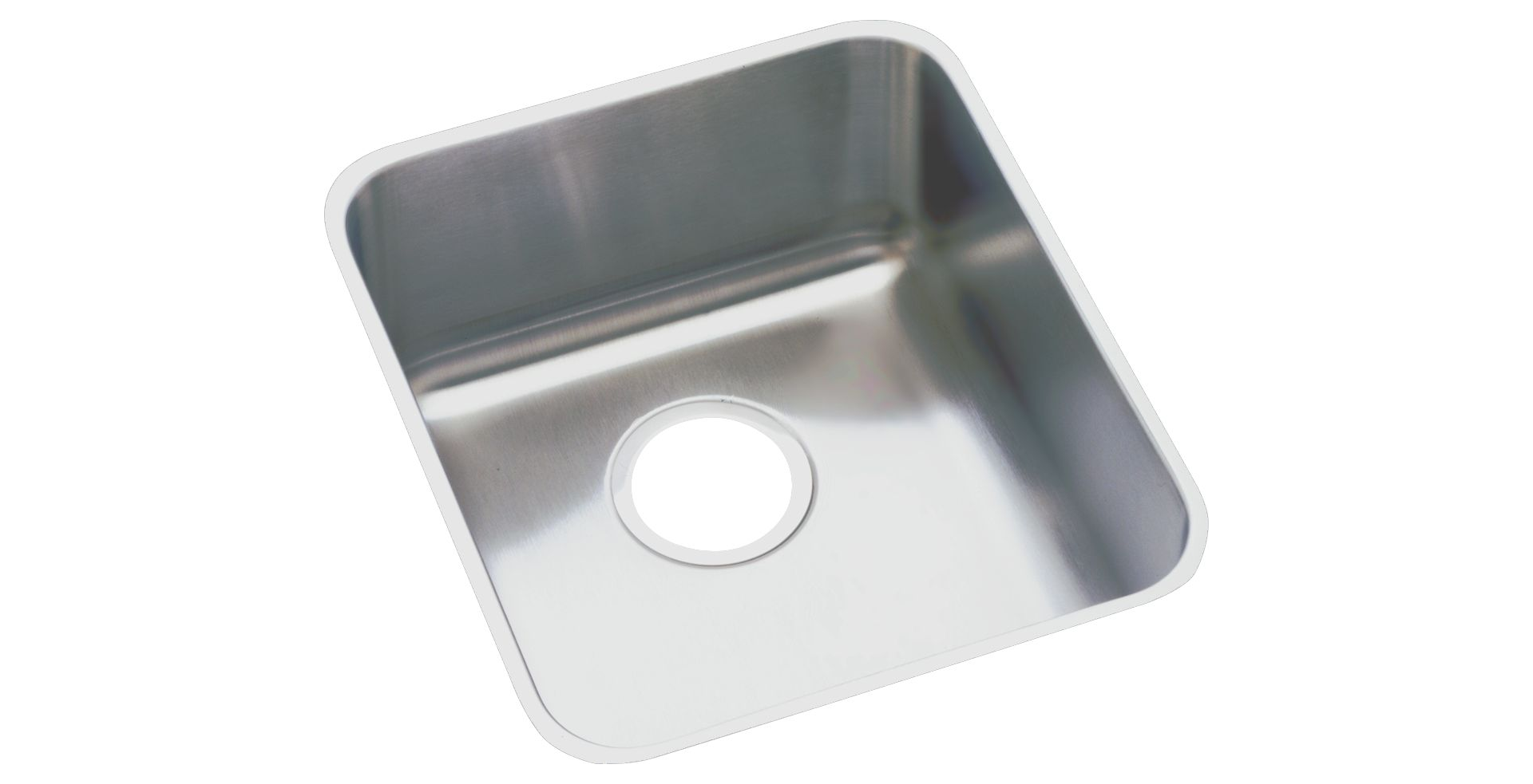 Elkay®, ELUH1616, Kitchen Sink, Lustertone™ Classic Collection, 16 in Bowl Length, 16 in Bowl Width, 7-7/8 in Bowl Depth, 3-1/2 in Drain Opening, 1 Bowls, 18-1/2 in L x 18-1/2 in W x 7-7/8 in H Overall, Undermount Mounting, 18 ga 304 Stainless Steel, Domestic
