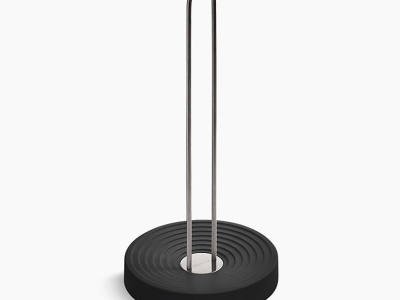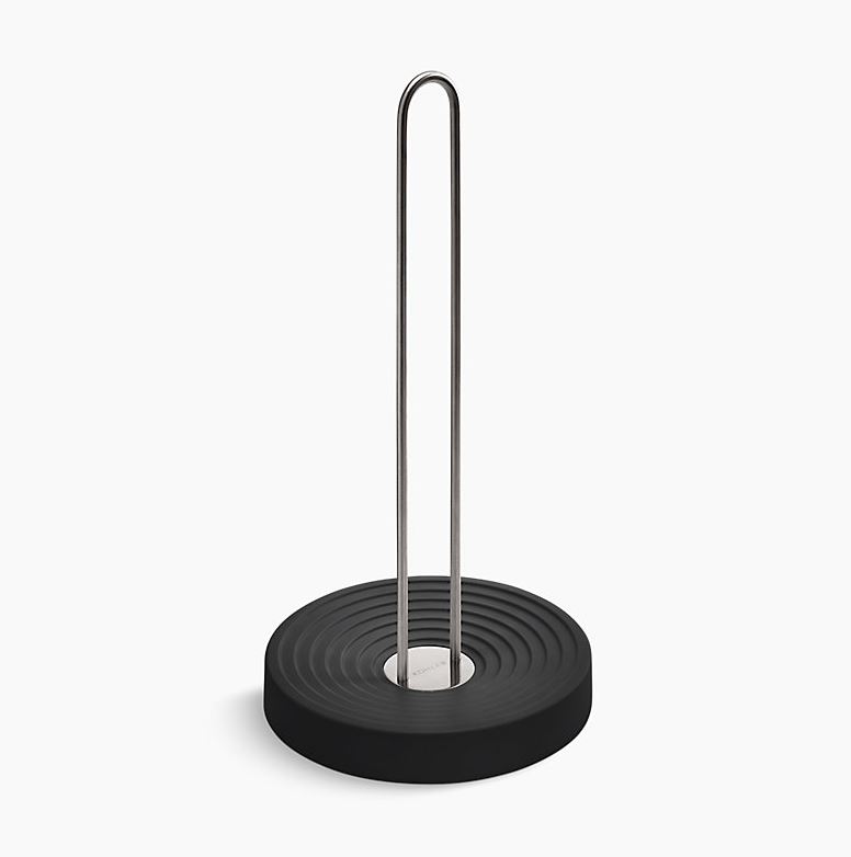 This weighted paper towel holder is designed for easy one-handed tears without tipping or unraveling.