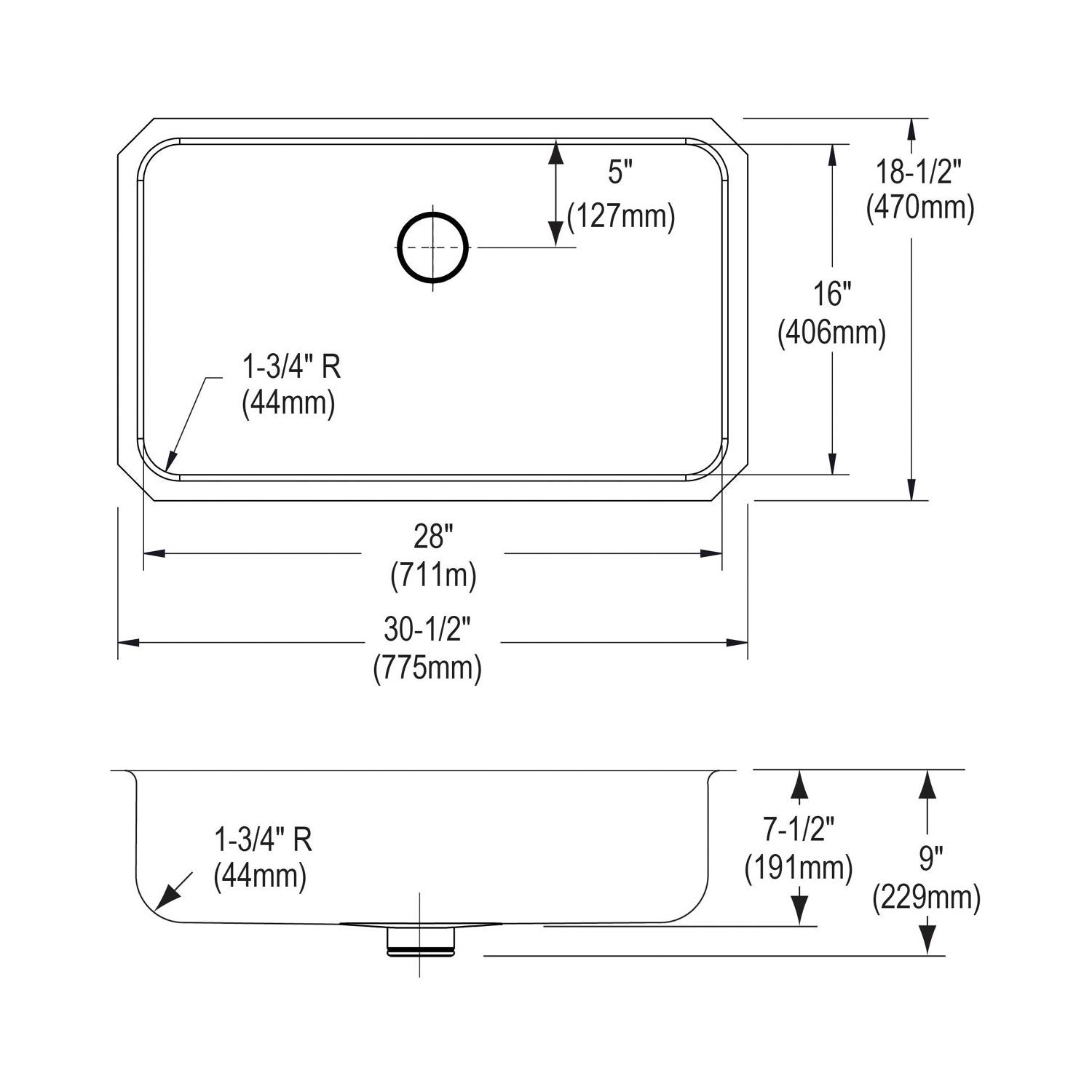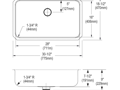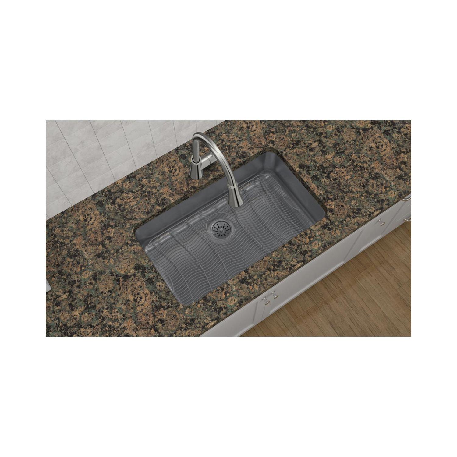 Elkay®, ELUH2816PD, Kitchen Sink, Lustertone™ Classic Collection, Rectangle Shape, 28 in Bowl Length, 16 in Bowl Width, 7-1/2 in Bowl Depth, 3-3/8 in Drain Opening, 1 Bowls, 30-1/2 in L x 18-1/2 in W x 7-1/2 in H Overall, Undermount Mounting, 18 ga 304 Stainless Steel