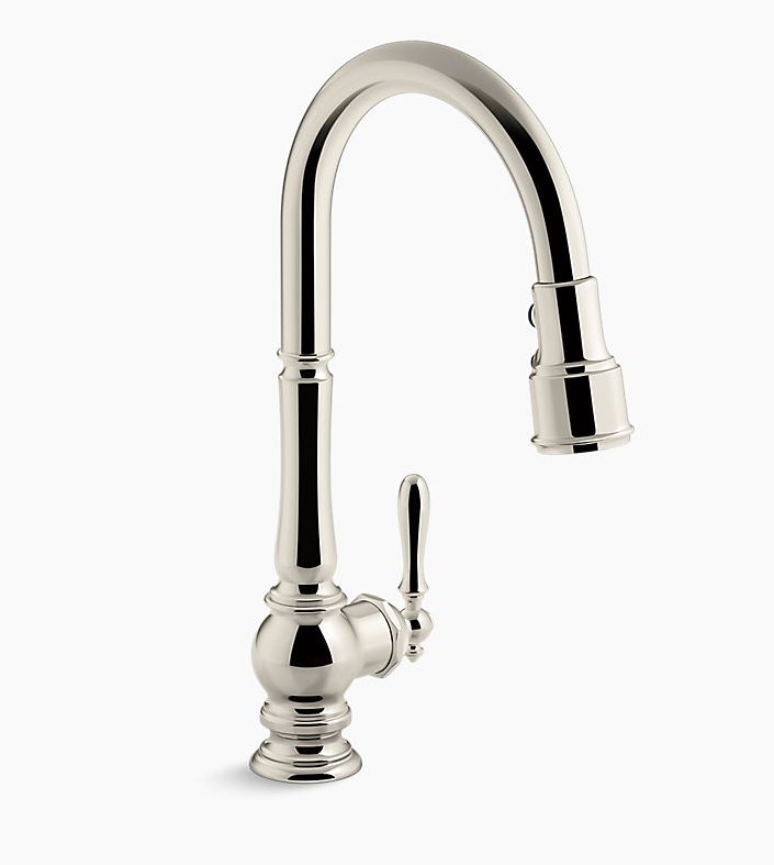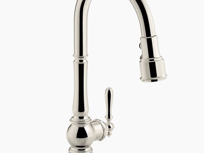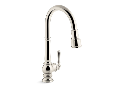 The KOHLER® Artifacts faucet collection brings you classic designs reimagined in fresh ways for various task areas of the kitchen. This Artifacts pull-down deck-mount kitchen sink faucet displays vintage style with its high-arch spout and turned lever handle. The three-function pull-down sprayhead has you covered for a range of tasks: BerrySoft spray for food prep, an aerated stream for filling pots, and Sweep spray for cleaning. Kohler's DockNetik docking system secures the sprayhead to the spout.