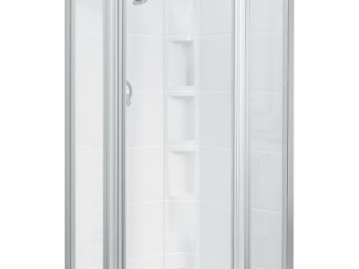 A real space-saver in small bathrooms, the Intrigue(TM) Neo-angle Shower Door utilizes a unique corner design and creates a stunning focal point that matches any style decor.
