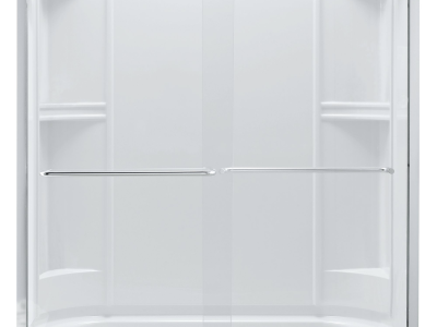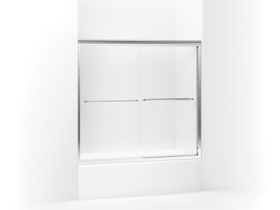 Sterling® 5425-59S-G05 5400 Sliding Bath Door With CleanCoat® Technology, Finesse®, Frameless Frame, Tempered Glass, Silver with Smooth/Clear Glass Texture, 1/4 in THK Glass, 51-5/16 in H Opening, 54-5/8 to 59-5/8 in W Opening